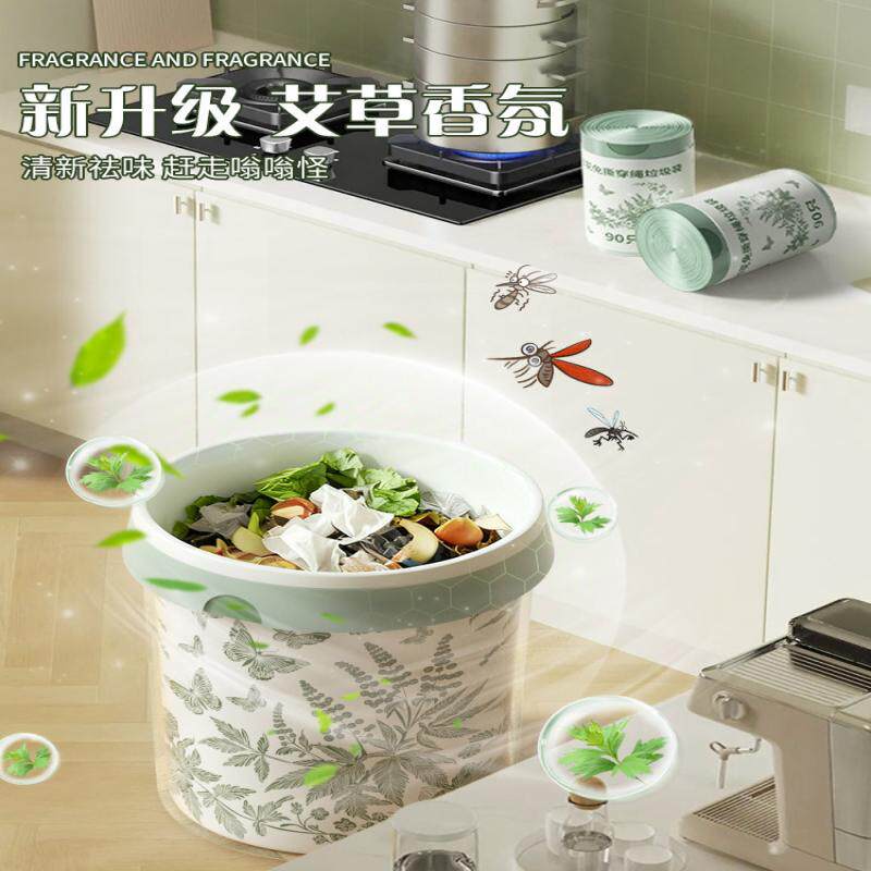 艾草味垃圾袋加厚免撕手提式厨房特厚抽绳塑料袋子办公室厚实黑色