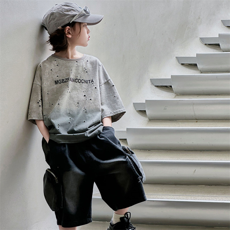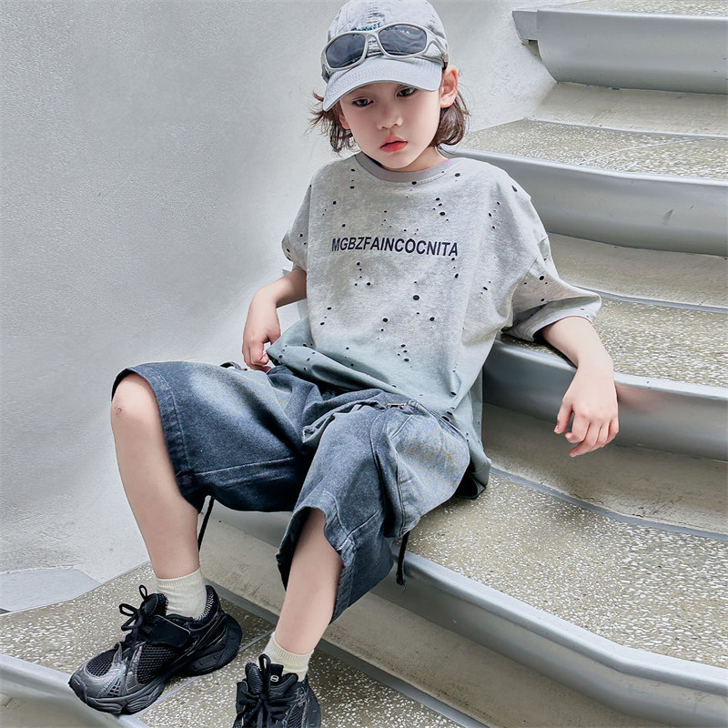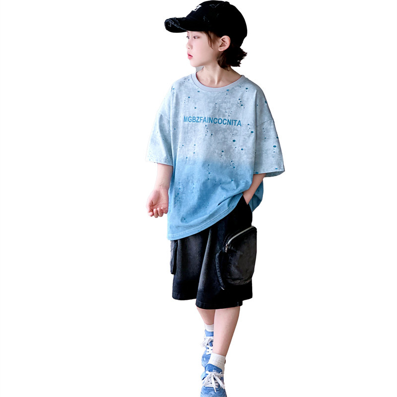男童夏季套装2026新款痞帅儿童短袖T恤两件套夏装中大童半袖T恤潮