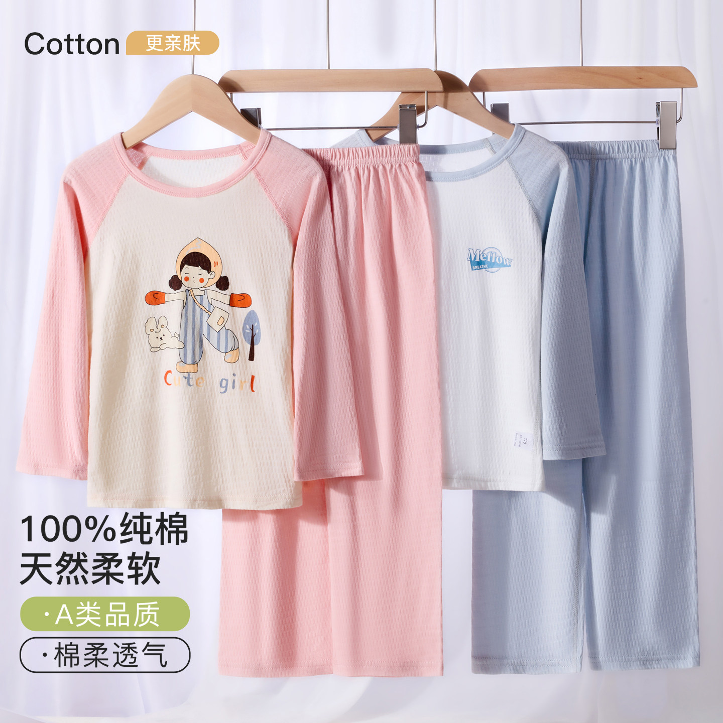 儿童睡衣纯棉薄款夏季男童女童家居服套装宝宝小孩全棉空调服春秋