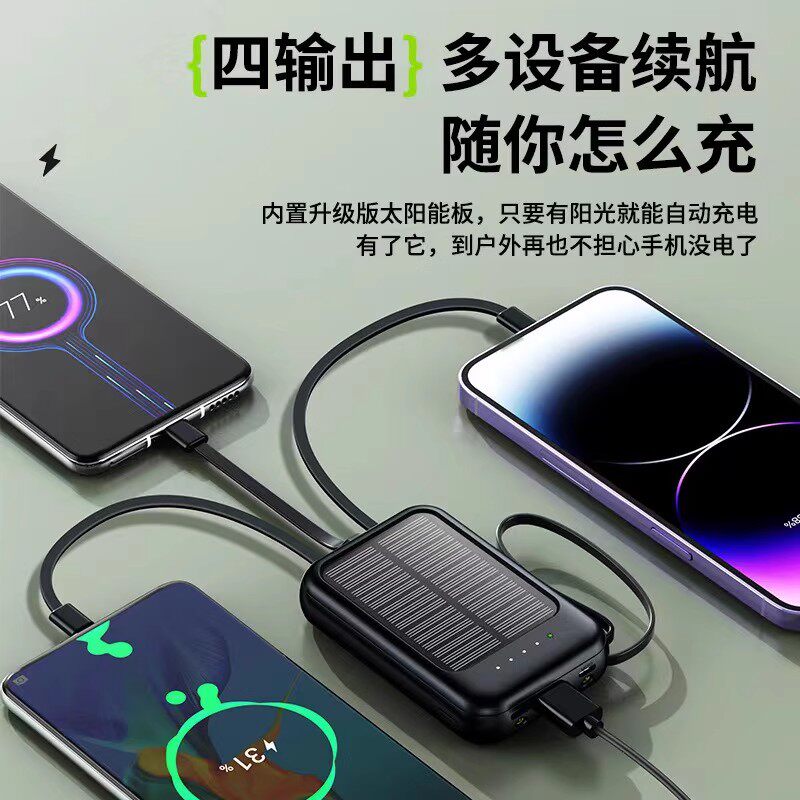 德国黑科技太阳能充电宝2025新款自带四线20000毫安超大容量户外便携移动电源华为小米苹果手机通用快充电器