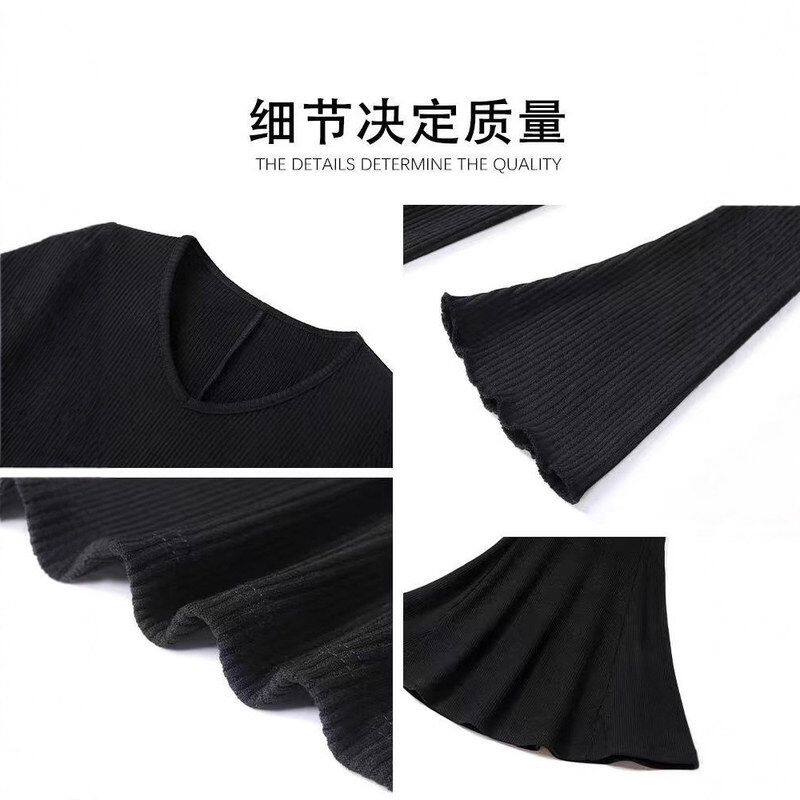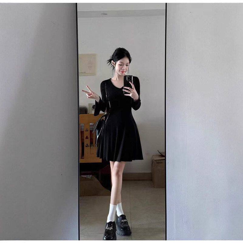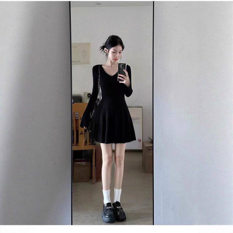 好看短款秋冬季连衣裙女巨针织小个子子搭长袖早黑色打底裙内搭穿