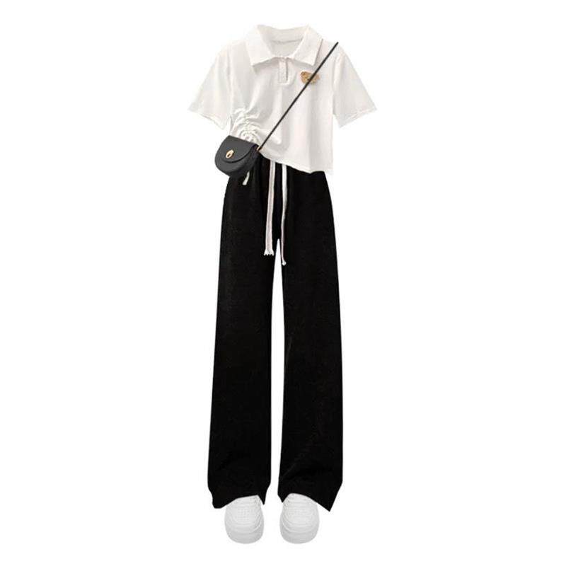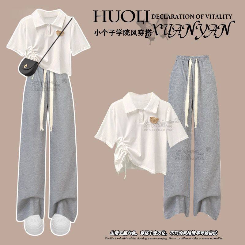 女童独特漂亮白色t恤短袖套装2026夏季新款中大童刺绣polo衫上衣