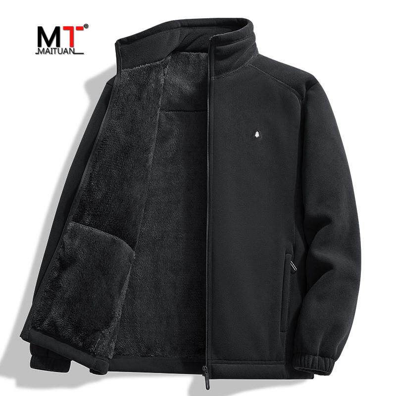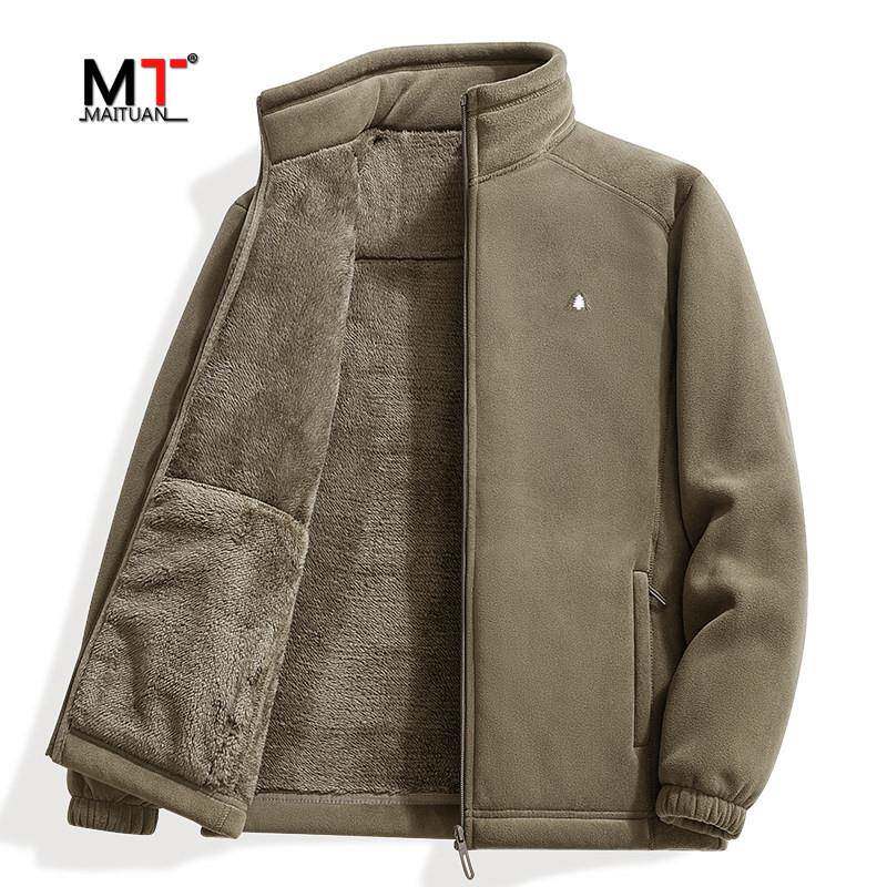 高端加厚摇粒绒夹克外套男士2025新款秋冬季加绒抓绒卫衣男款冬装
