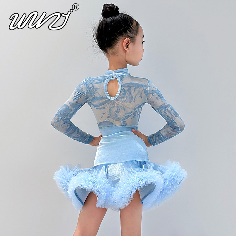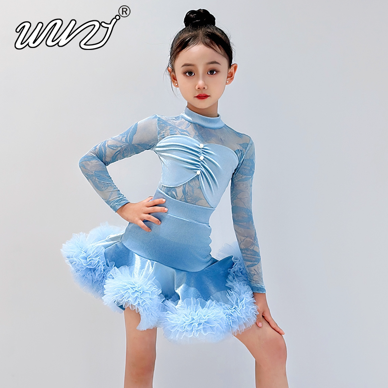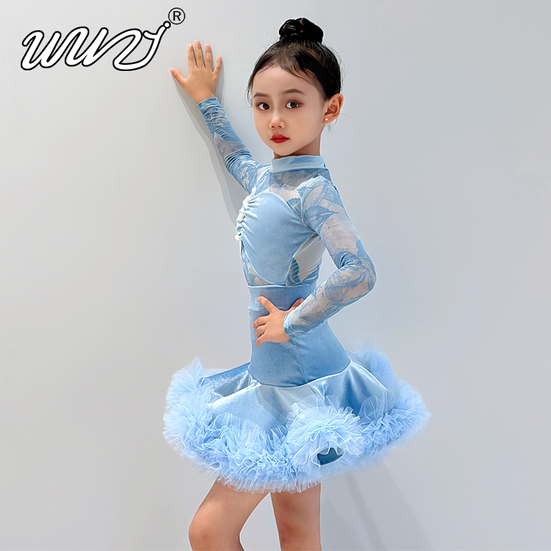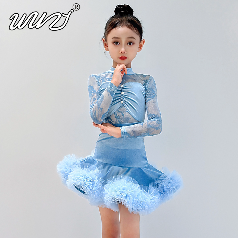 舞姿女童拉丁舞练功服半高领长袖款专业标准丝绒比赛训练服套装