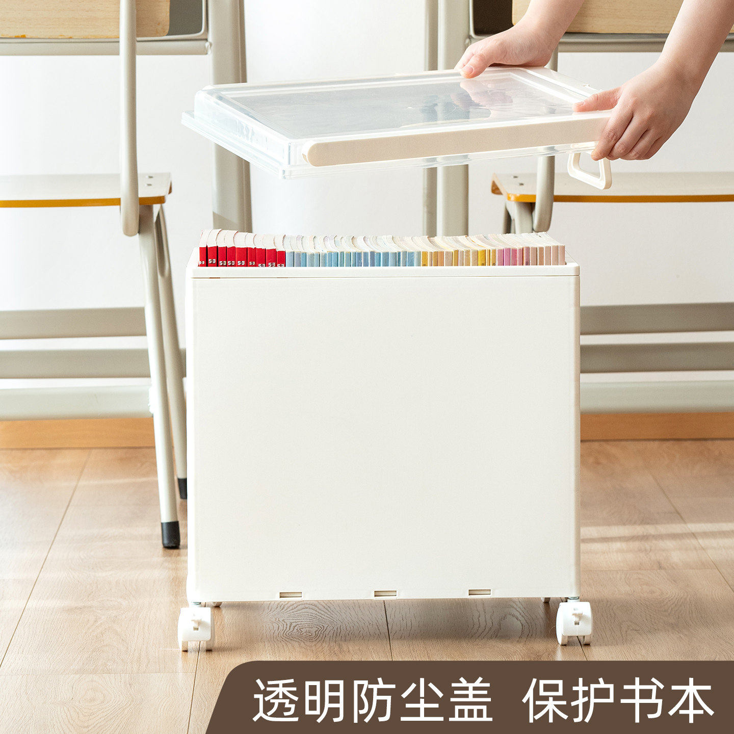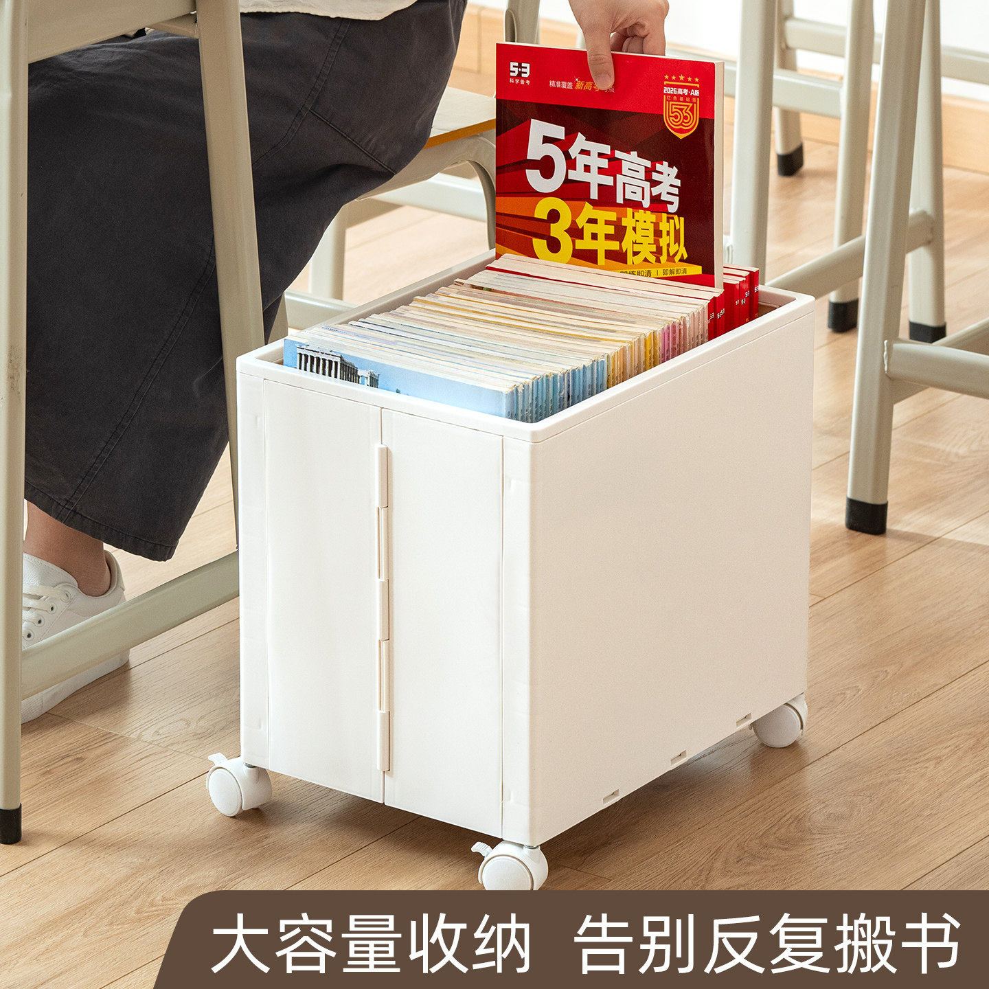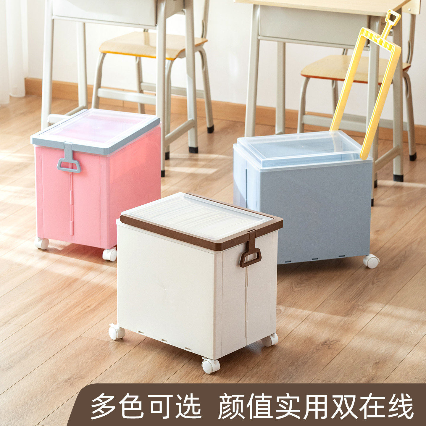 拉杆书本收纳箱带盖滑轮书箱教室用大容量书籍整理神器箱子折叠筐