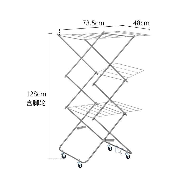 霜山折叠晾晒架三层落地式晒衣架不锈钢室内阳台移动凉衣杆挂衣架