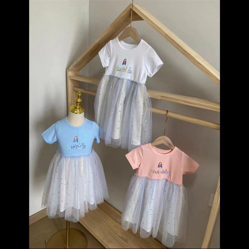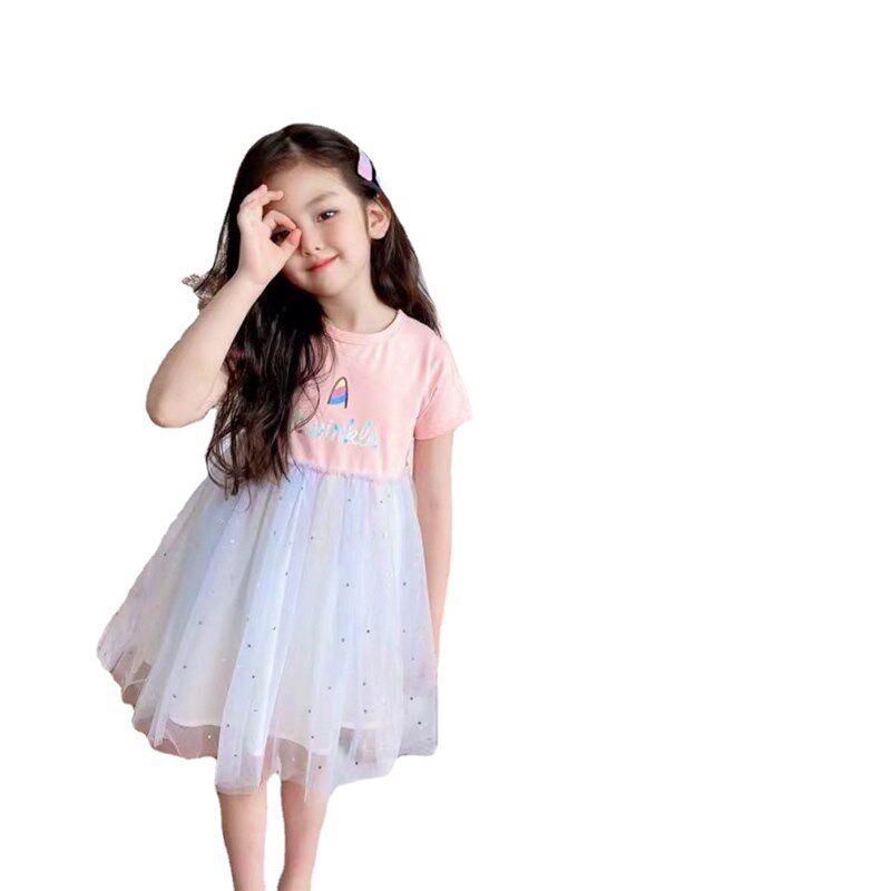 1-8岁女童连衣裙夏季新款儿童薄款纱裙5彩虹公主连衣裙6宝宝裙7