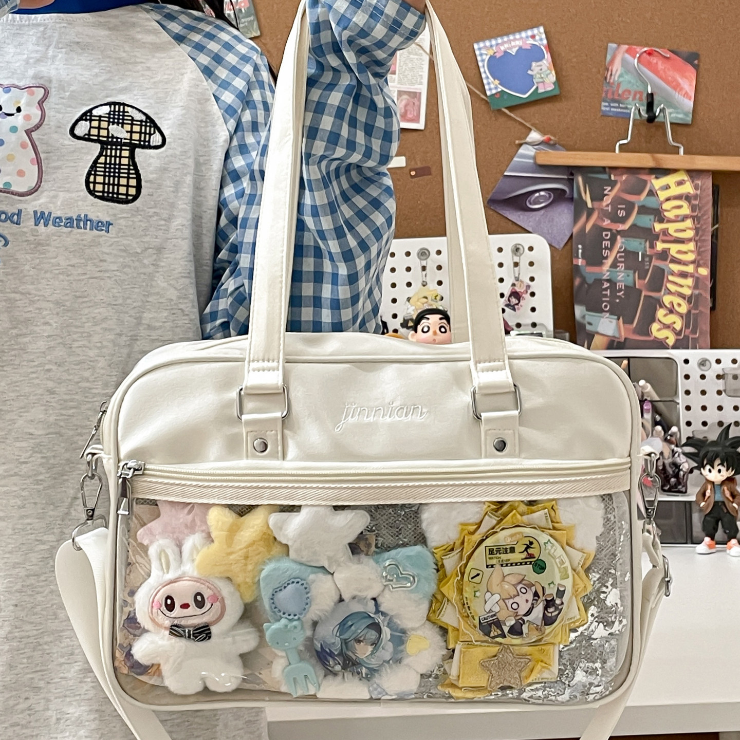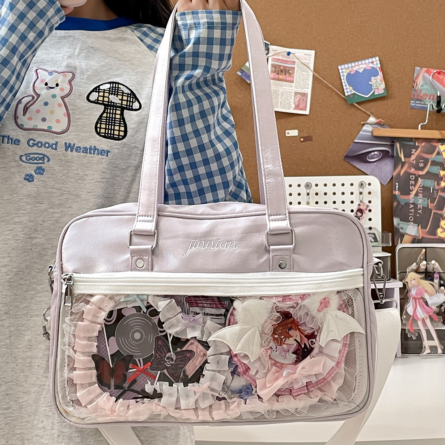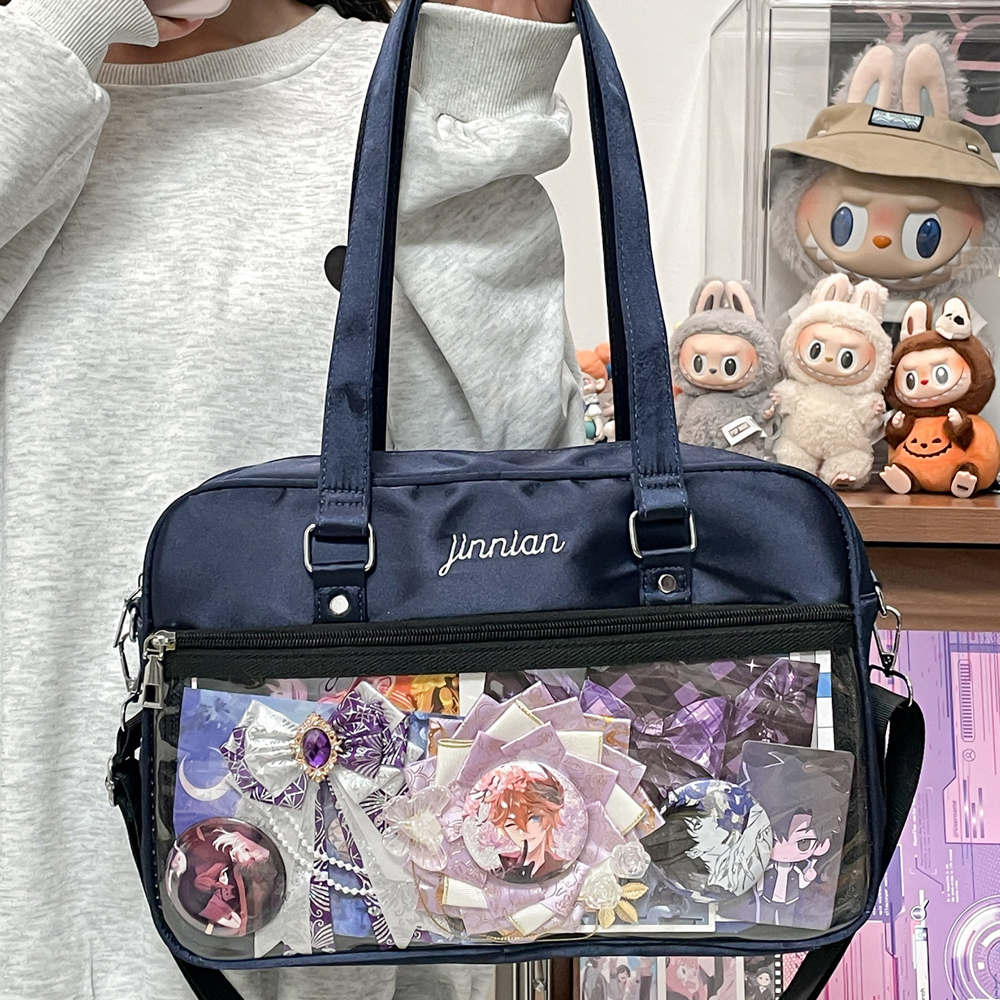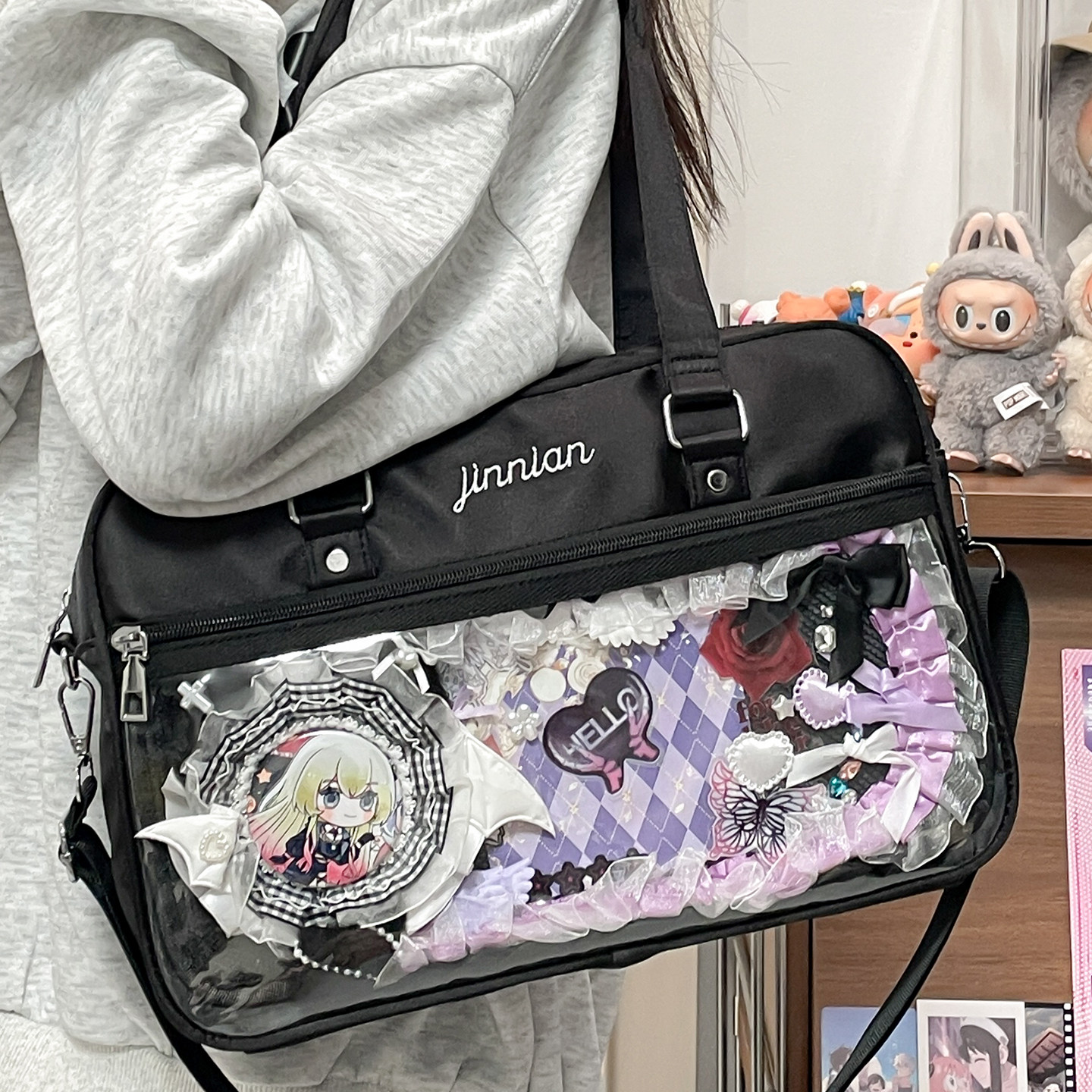 311线报网描述:大容量装书小食量单肩包10cm娃包透明谷子缎
