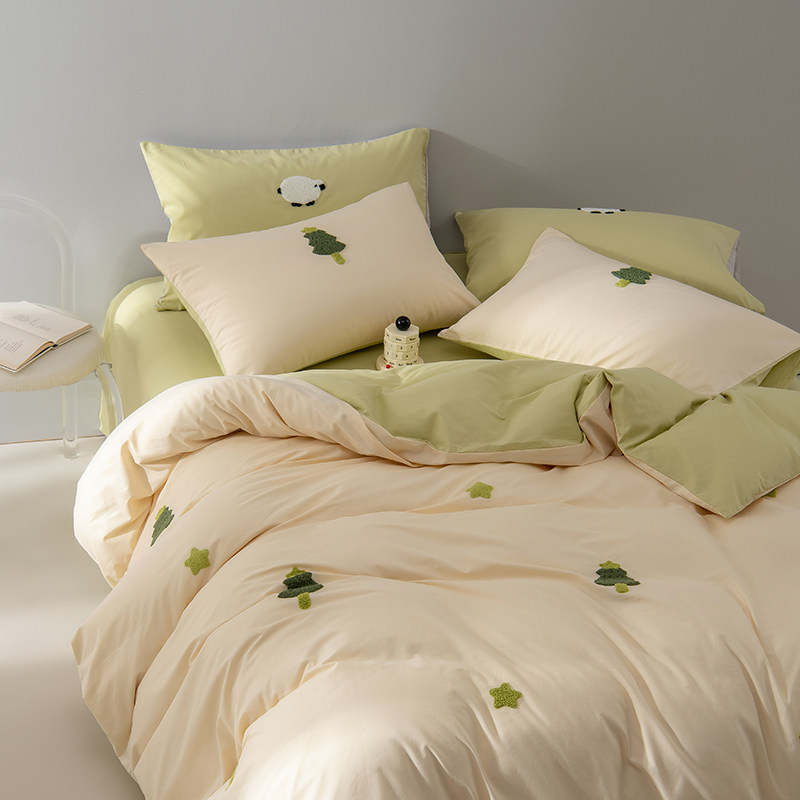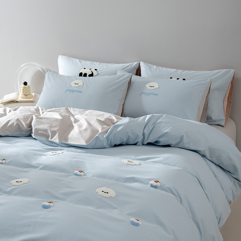 春夏可爱毛巾绣全棉水洗棉四件套 纯棉卡通被套床单款床上用品