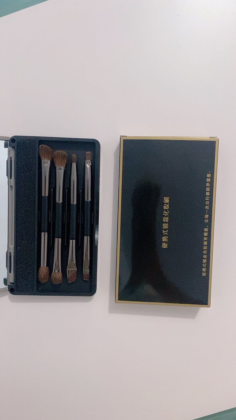 小麻雀双头眼影刷套盒4便携款旅行便携套刷带镜子化妆刷眼部盒装