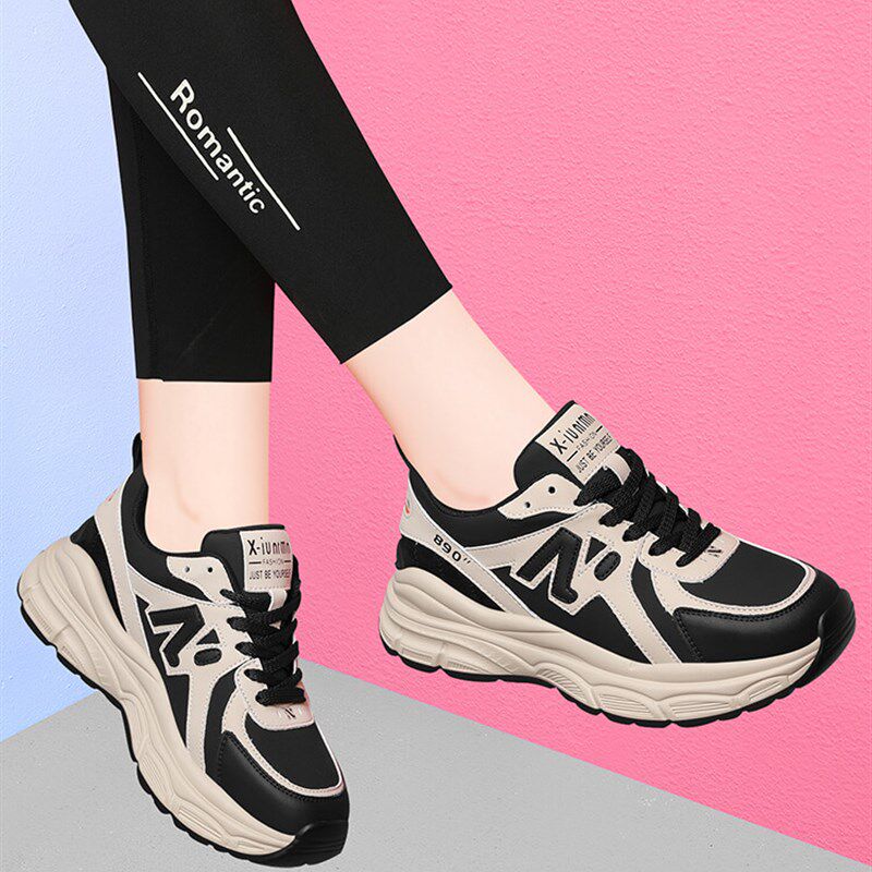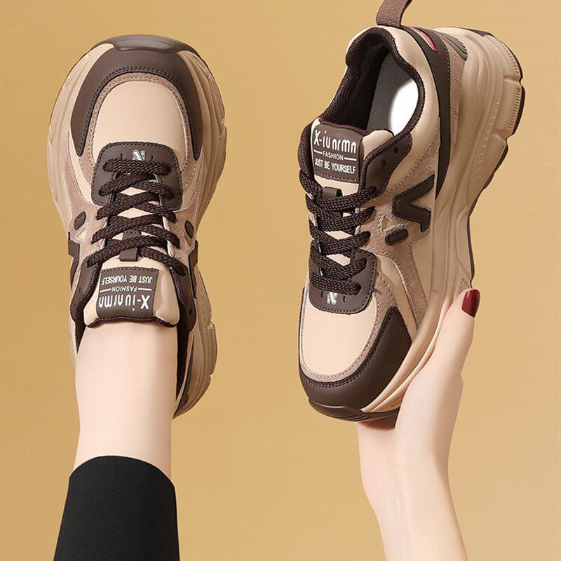 真皮运动鞋百搭女鞋2024春秋新款轻便软底休闲厚底皮面旅游老爹鞋