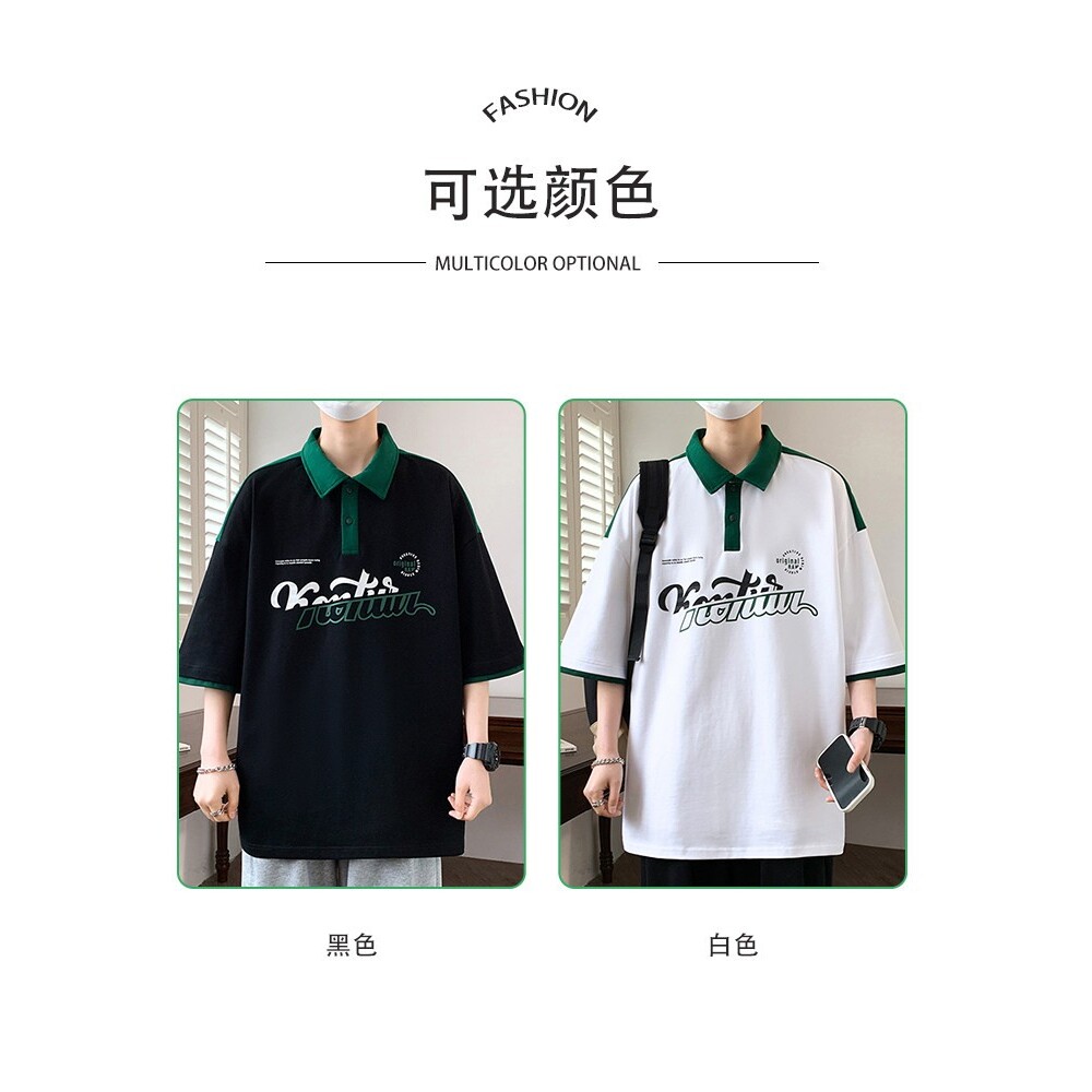 速干polo衫夏季有领短袖t恤男宽松上衣青少年字母印花半袖体恤男t