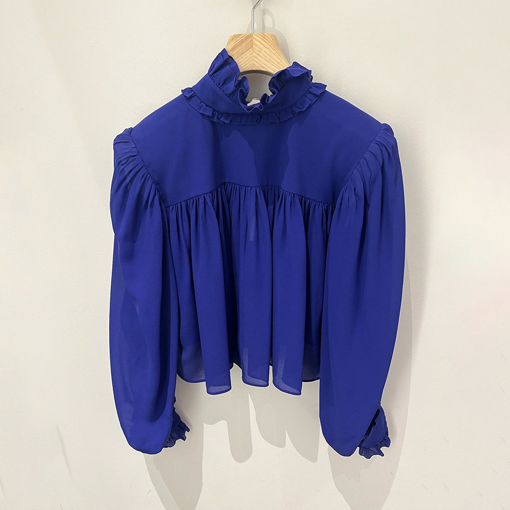 【现货】2026早春新款小众荷叶边立领泡泡长袖衬衫显瘦短款上衣女