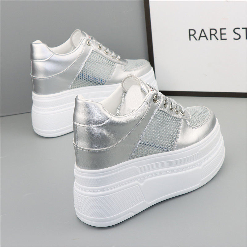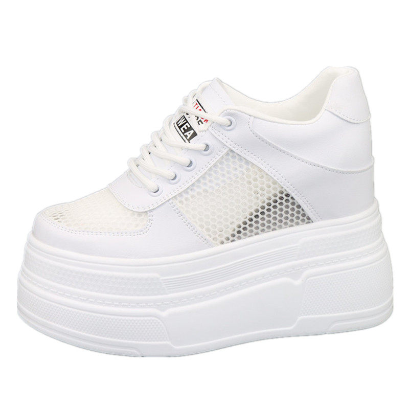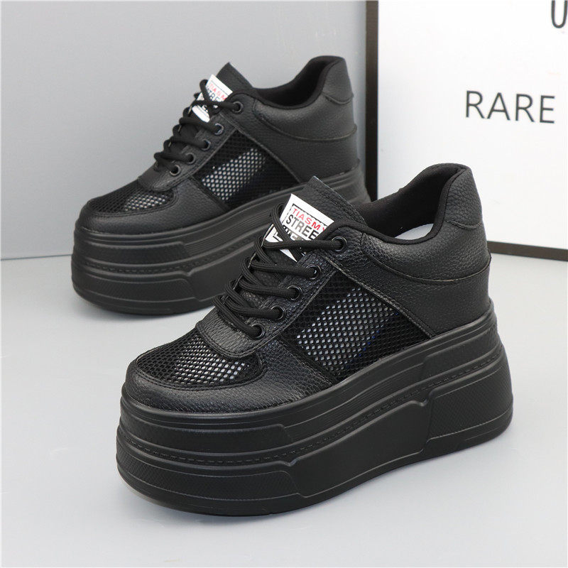 12公分内增高网面透气女鞋夏季新款全黑厚底松糕休闲鞋10CM网面鞋