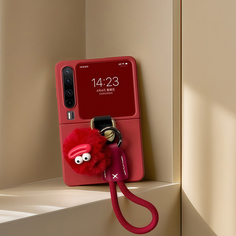适用华为purax手机壳时尚酒红色高级复古风可爱蝴蝶结创意丑萌purax艺术定制版折叠屏手拎指环挂绳链条防摔套