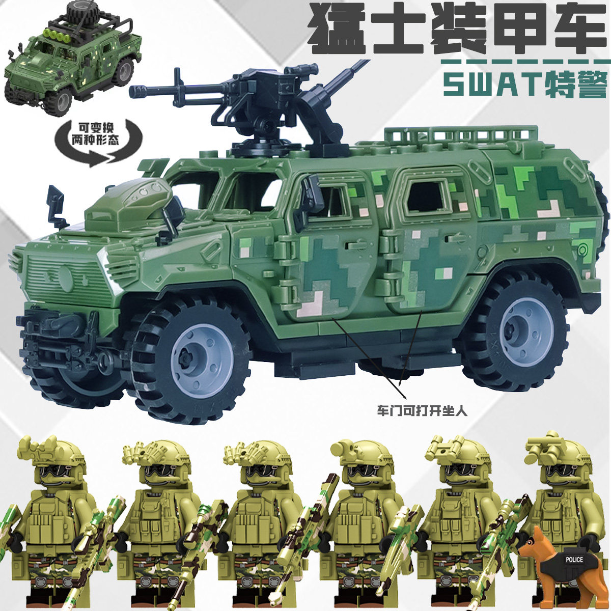 维和防爆队特警人仔特种兵悍马猛士装甲车军事拼装乐高积木玩具
