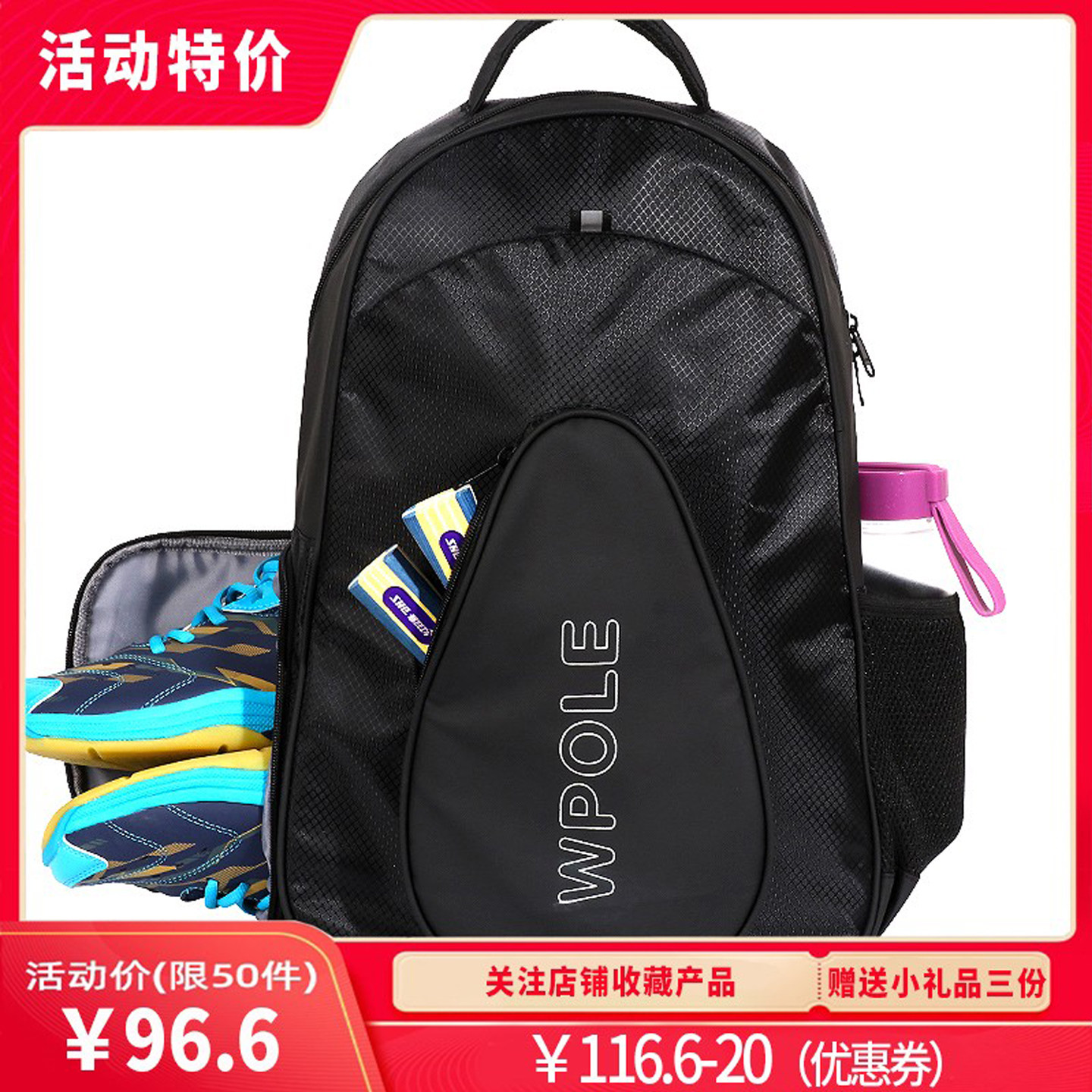 WPOLE小雪原创乒乓球拍运动背包户外训练双肩包防水拍套独立鞋仓