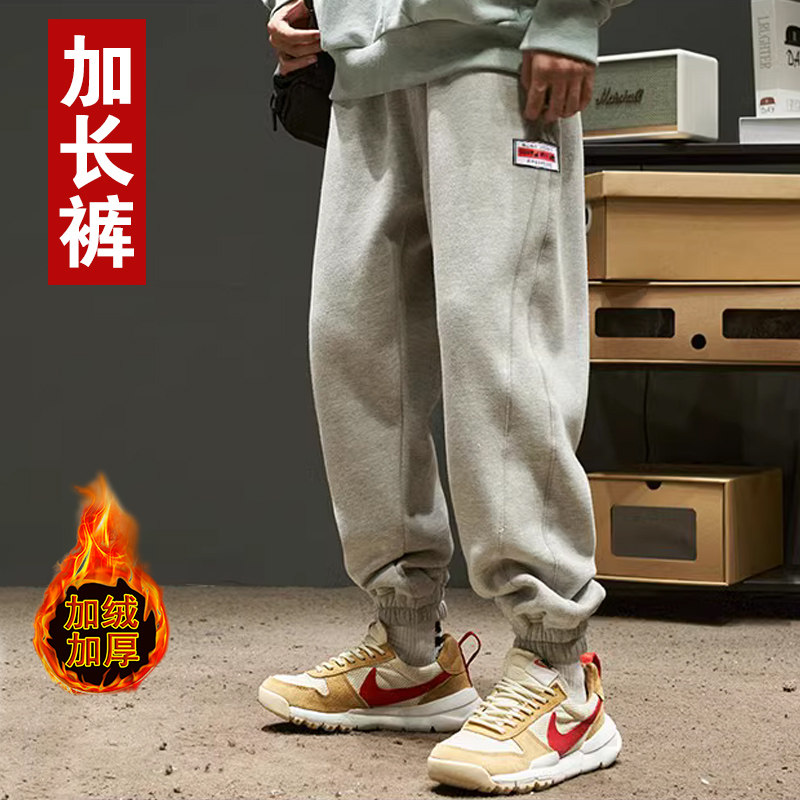 冬季加绒加厚190加长版男裤子高个子青少年宽松休闲运动裤卫裤潮