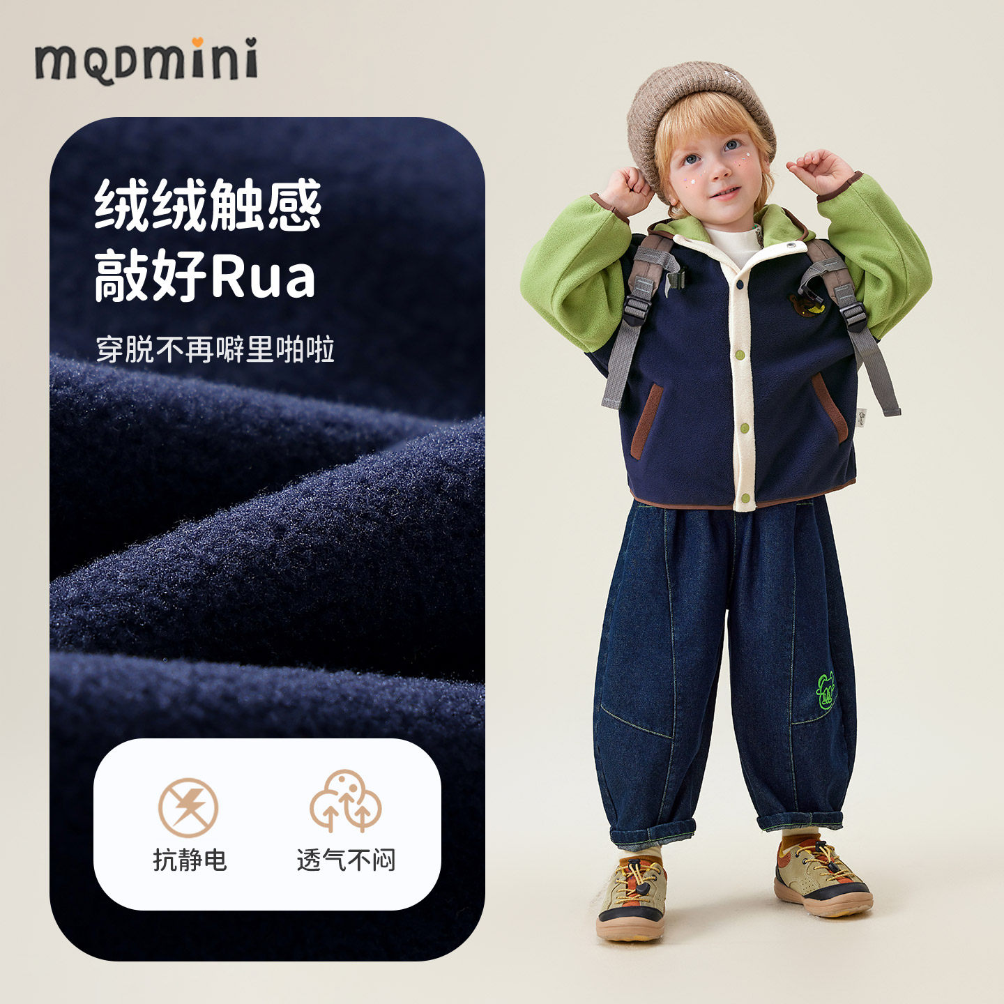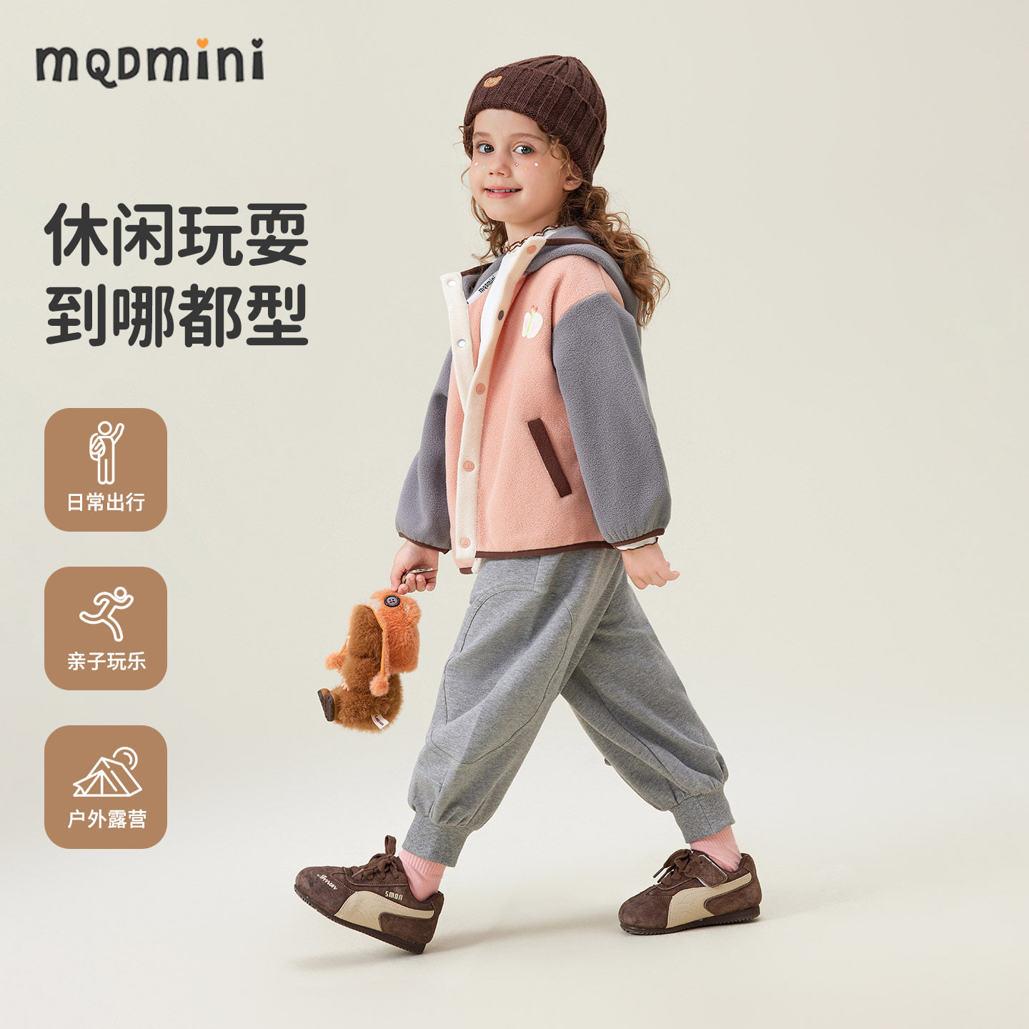 MQDmini男童摇粒绒外套2026春季新款女童连帽春装宝宝加绒上衣服