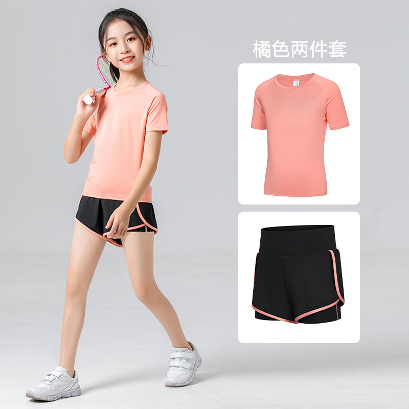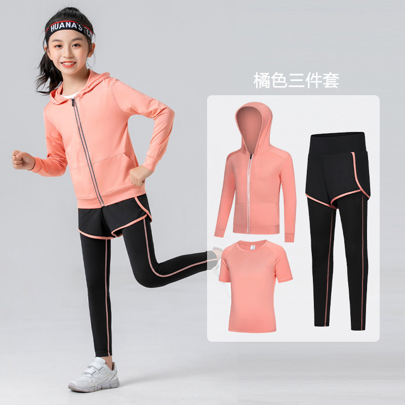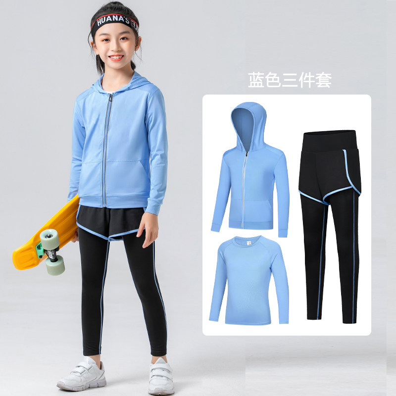 儿童运动套装中大童连帽透气弹力速干衣女童户外跑步运动训练服春