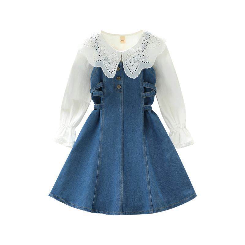 女童春秋裙子套装2025秋季洋气童装两件套中大童牛仔连衣裙背带裙