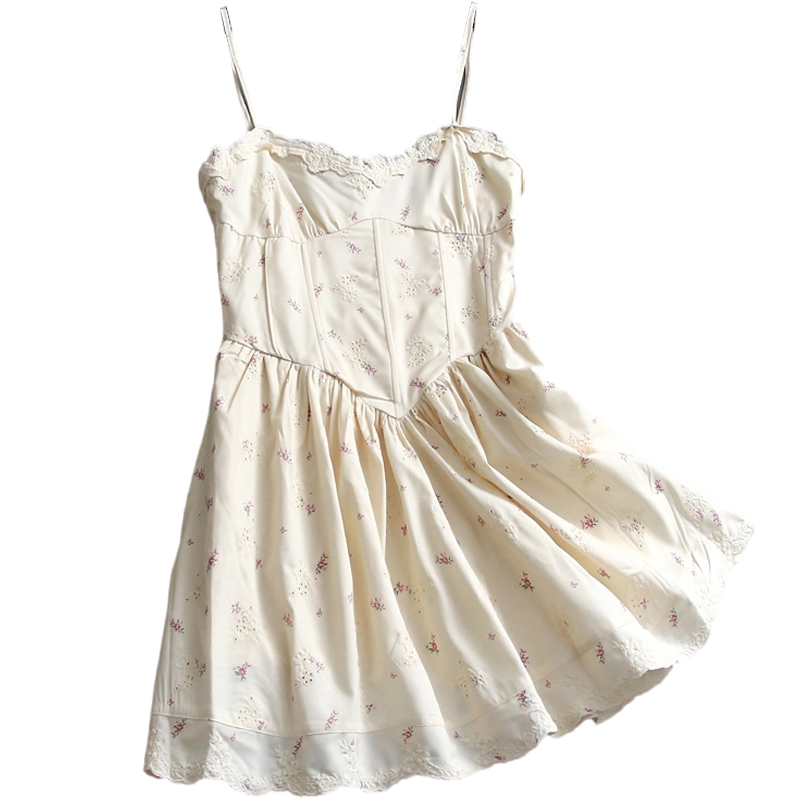 刺绣绝美鱼骨收腰掐腰a字碎花裙夏季新款短款女裙吊带连衣裙X996