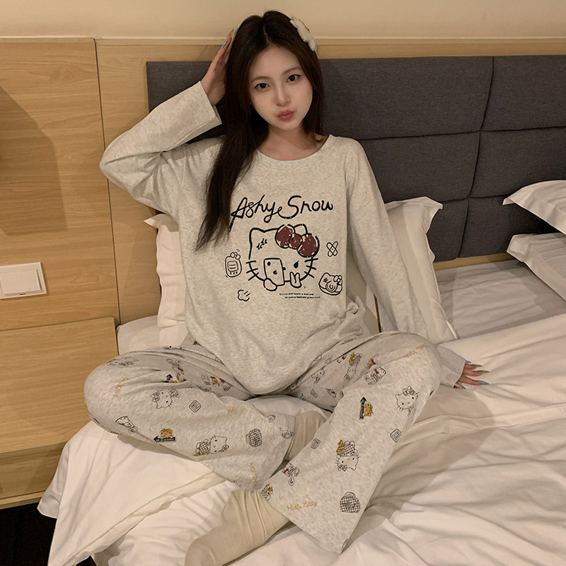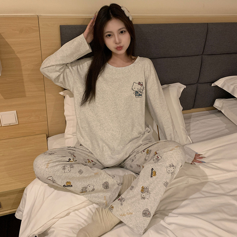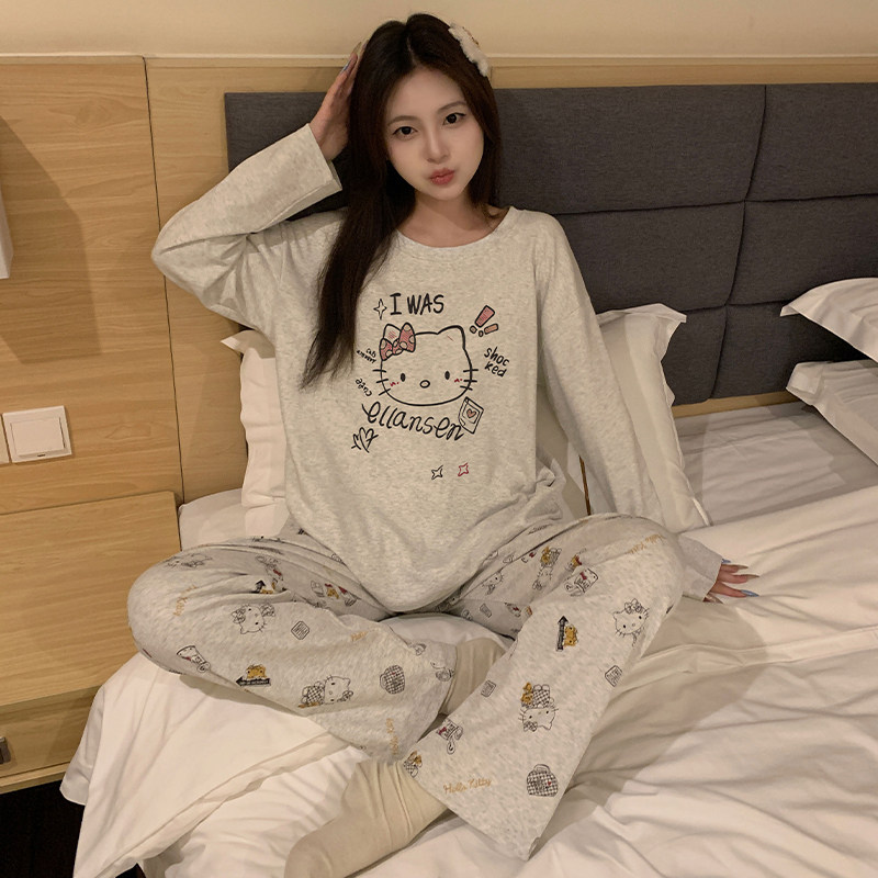 睡衣女款春秋季纯棉长袖长裤2025新款卡通条纹猫咪全棉家居服套装
