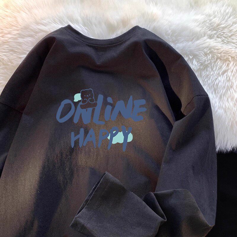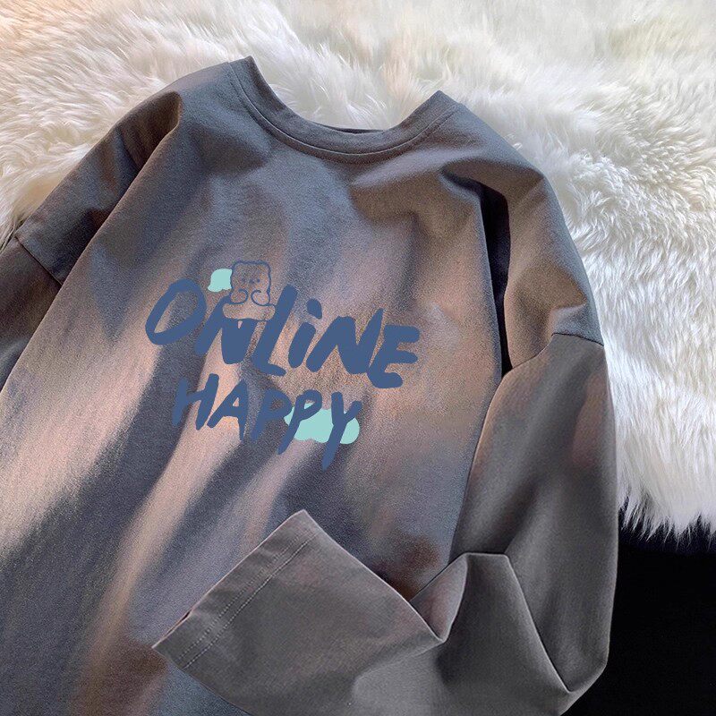 撤回外贸纯棉~秋季港风潮流宽松长袖男女款青少年透气打底衫t恤