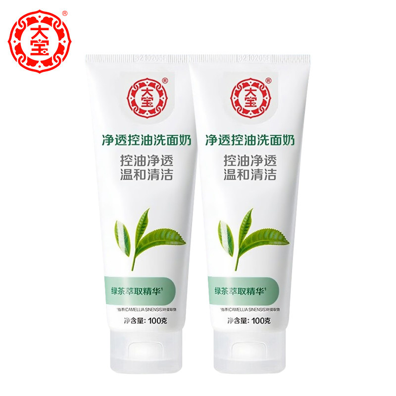 大宝洗面奶女绿茶净透控油洗面奶100g*2支补水保湿清洁泡沫护肤品