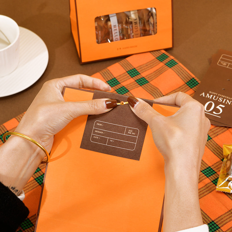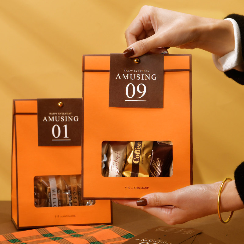 ins牛皮纸袋新年礼品袋饼干雪花酥牛轧糖纽扣饼干糖果点心包装袋