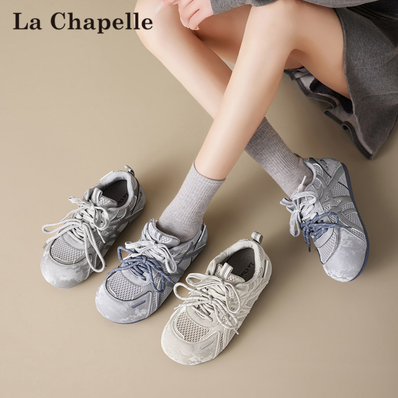 拉夏贝尔德训鞋女2026春夏季新款网面透气小白鞋百搭薄款运动板鞋
