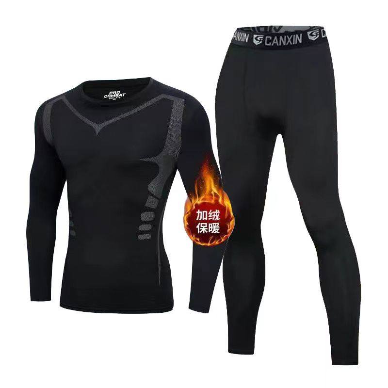 加绒滑雪服速干衣冬天男士跑步运动篮球打底训练裤儿童长袖紧身裤