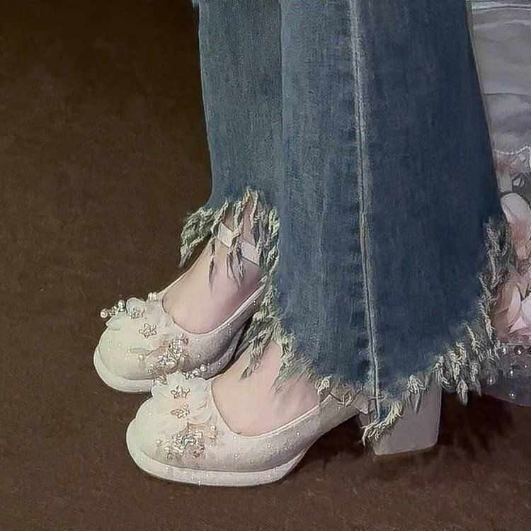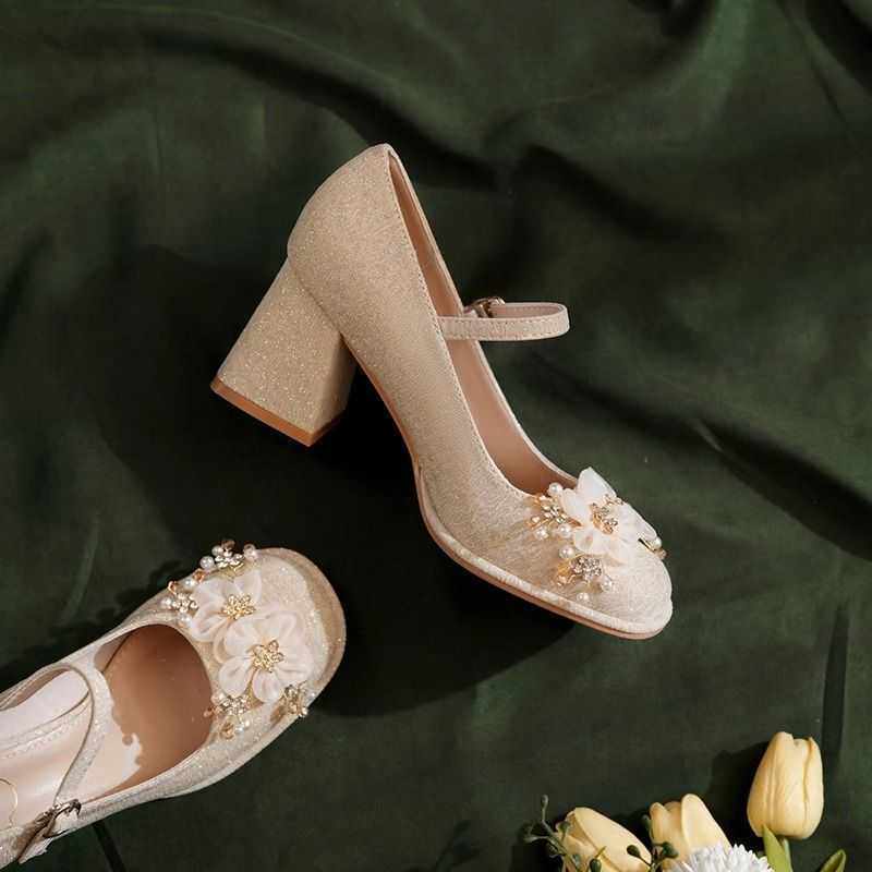 小众公主风不累脚女鞋子春夏季新款日常百搭配裙子中跟粗跟鞋
