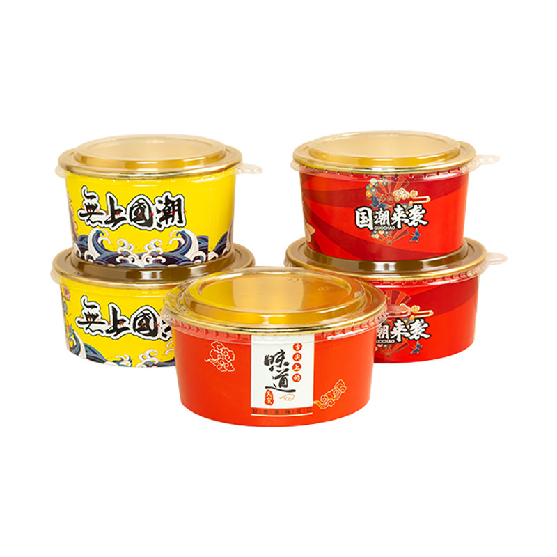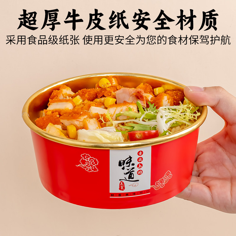 食品级耐高温金箔外卖牛皮纸打包盒一次性纸碗沙拉碗商用国潮餐盒