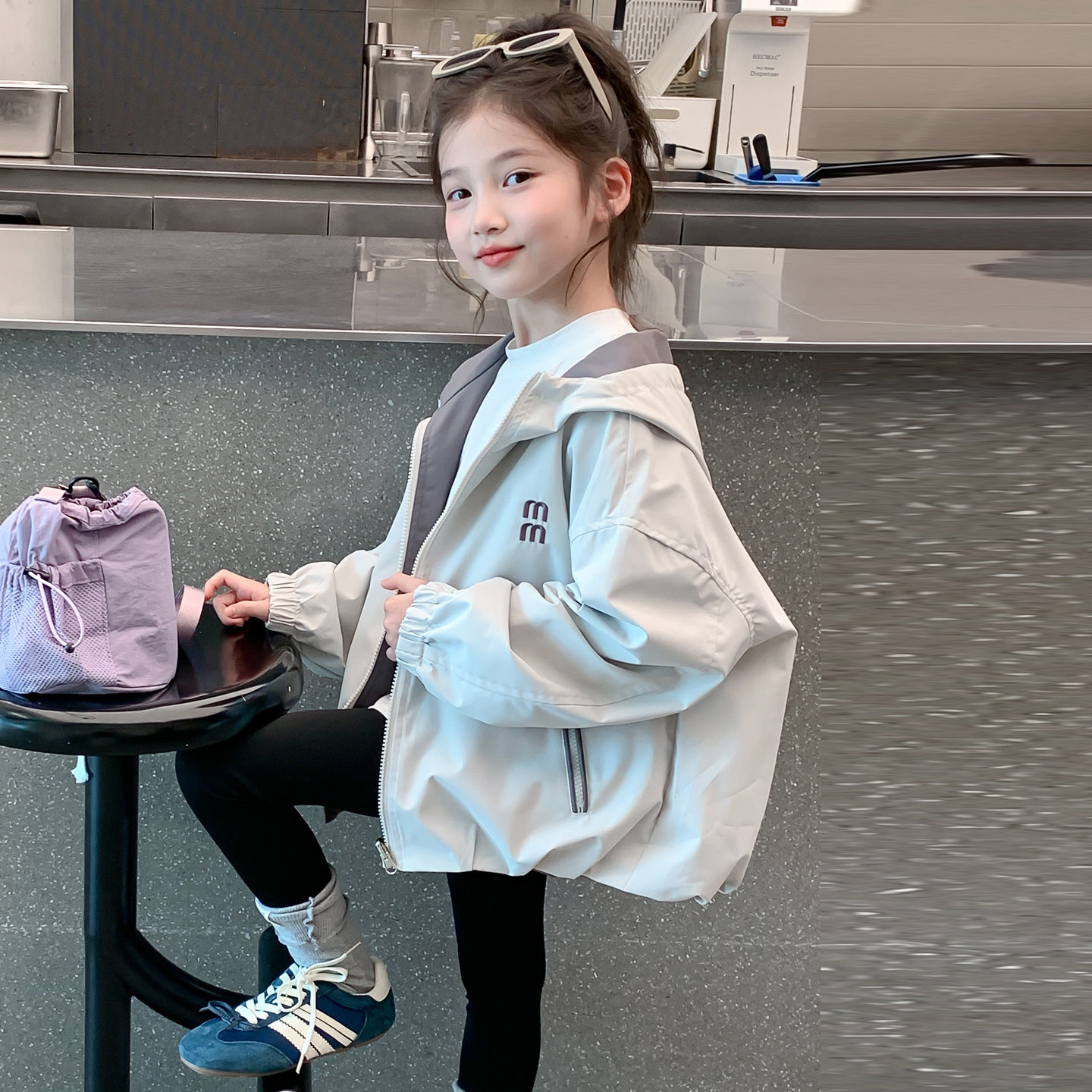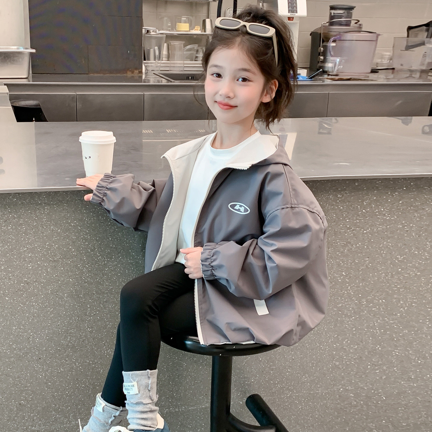 两面穿女童春装风衣外套春秋新款洋气中大童连帽上衣初中学生夹克
