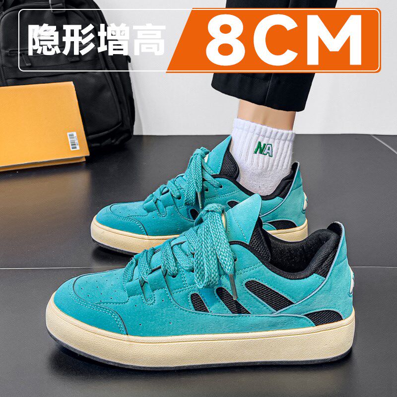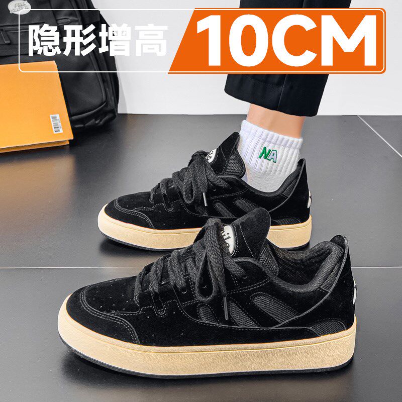 网红爆款男鞋2025新款夏季透气厚底隐形内增高10cm百搭运动板鞋子