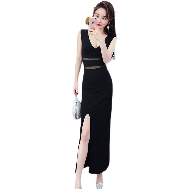 性感高端轻奢连衣裙新款气质高级感夏季长裙v领开叉收腰显瘦A字裙