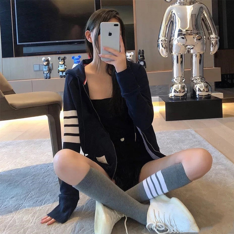 潮牌TB华夫格拉链连帽卫衣外套宽松2026春季新款男女情侣长袖上衣