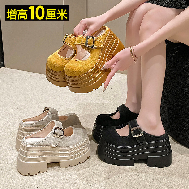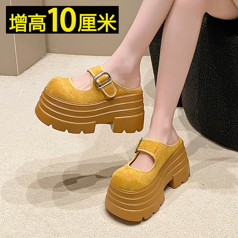 10cm厚底包头半拖鞋女夏外穿2025新款小个子增高松糕鞋时尚勃肯鞋