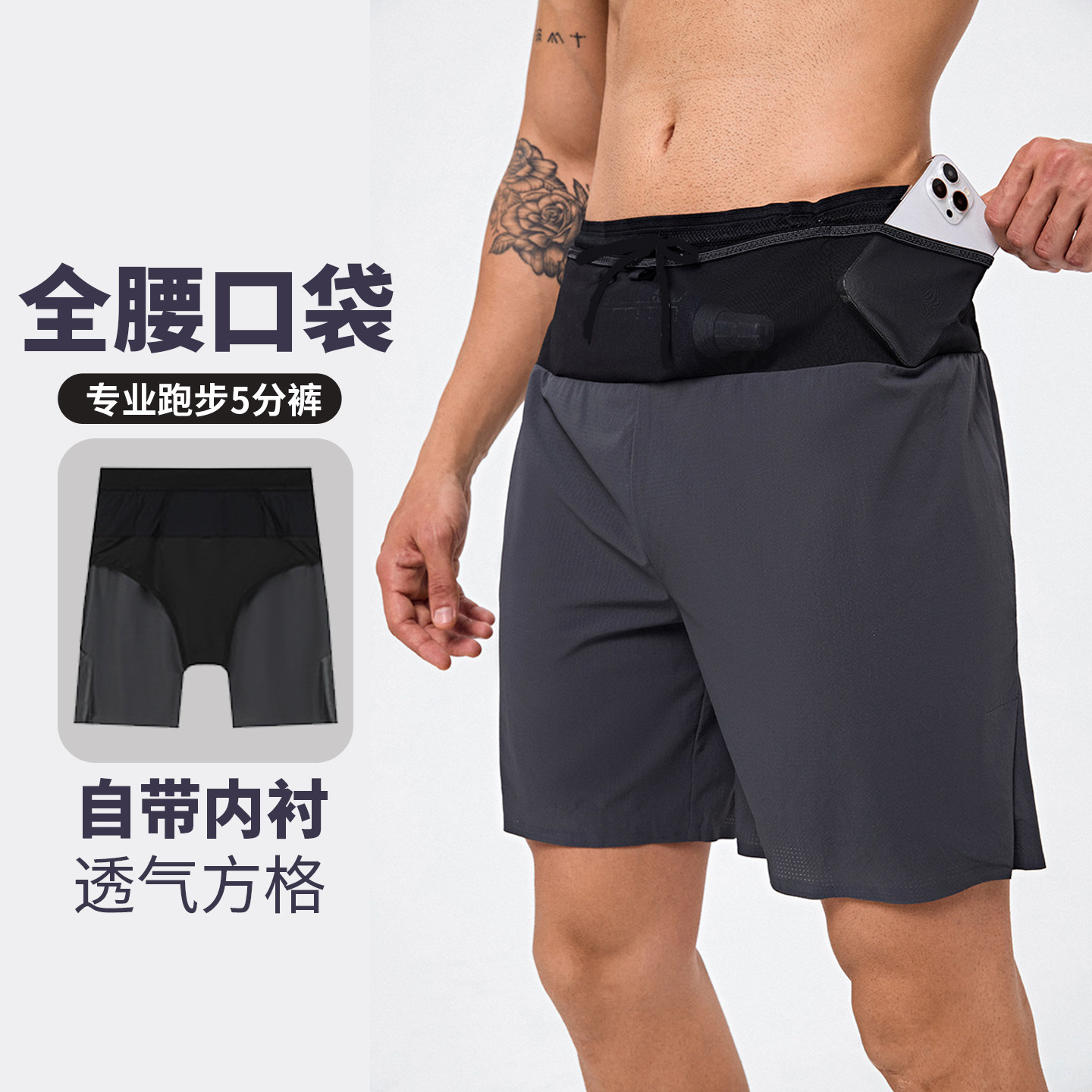 马拉松跑步短裤男户外速干透气健身篮球训练带内衬内胆运动五分裤