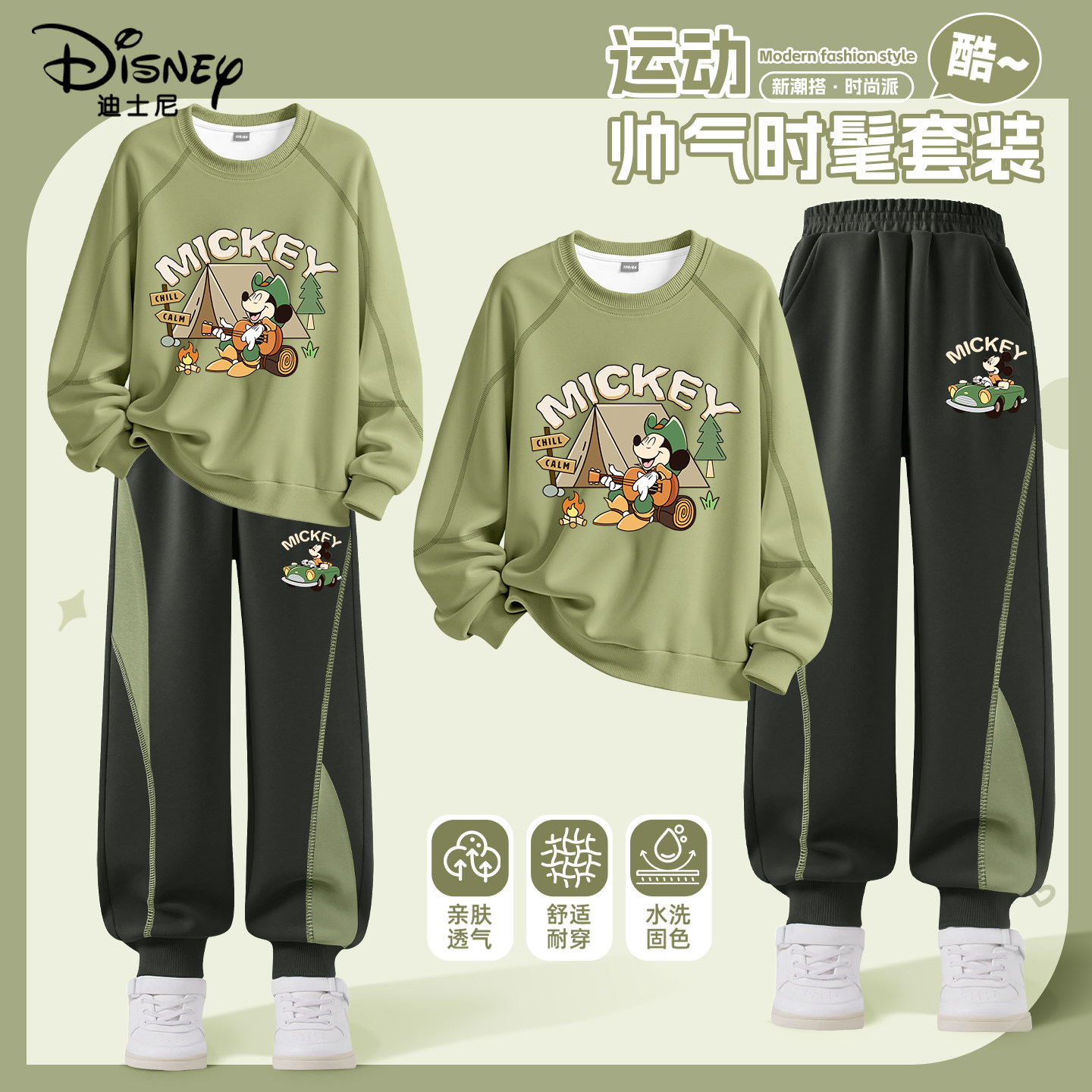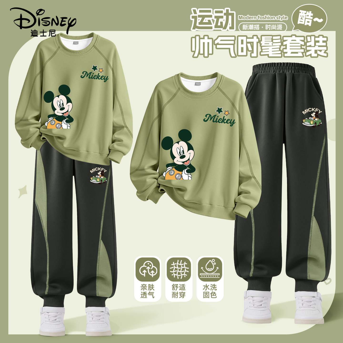 迪士尼男童运动套装春秋休闲卫衣裤子童装2026新款儿童春装两件套