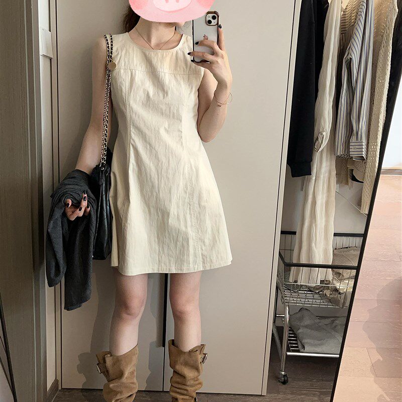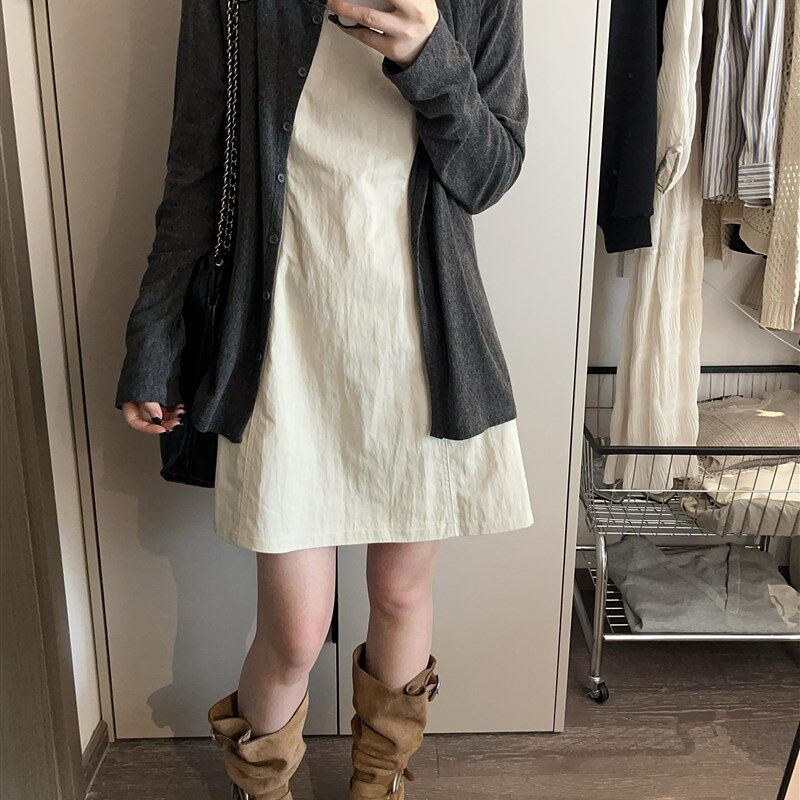 大码胖mm无袖背心连衣裙女夏季小个子收腰短裙长袖开衫两件套装潮