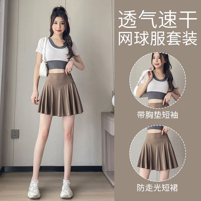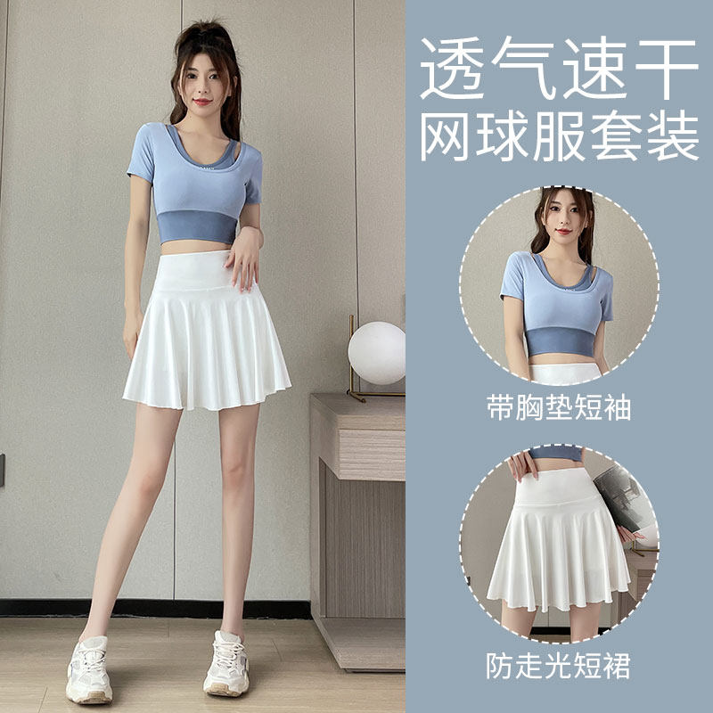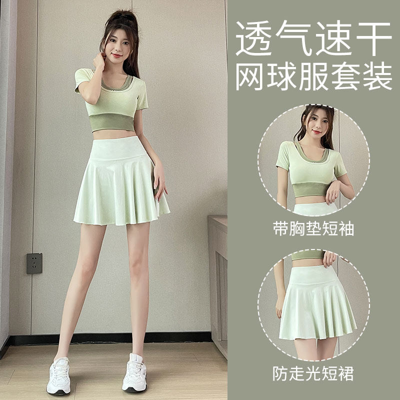 羽毛球服女夏季2026新款网球运动套装瑜伽健身上衣跑步速干短裙子