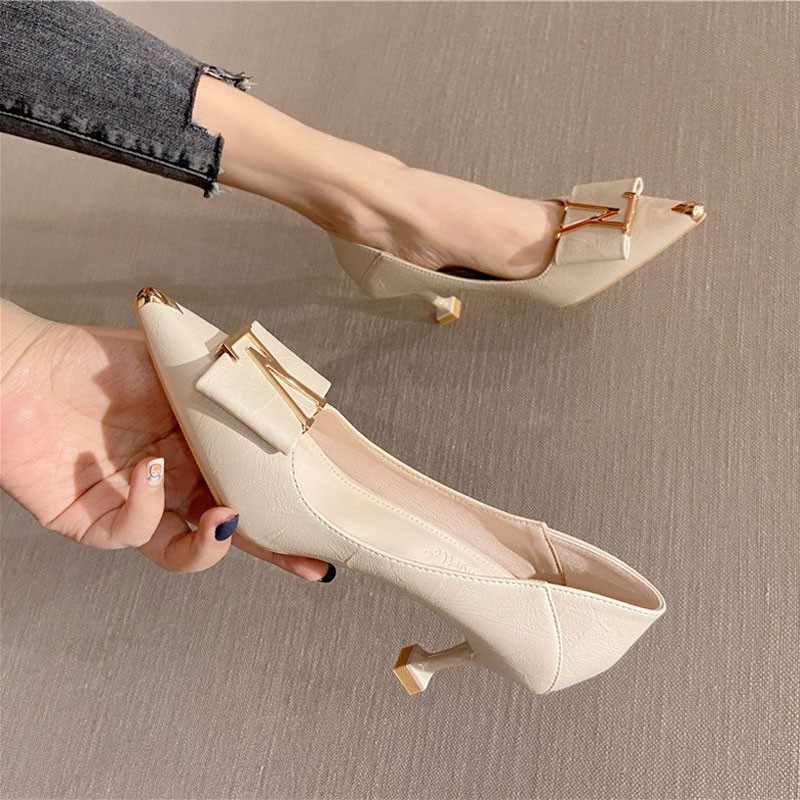 高跟鞋女2026年春夏季新款黑色职场软皮工作鞋不累脚尖头细跟单鞋