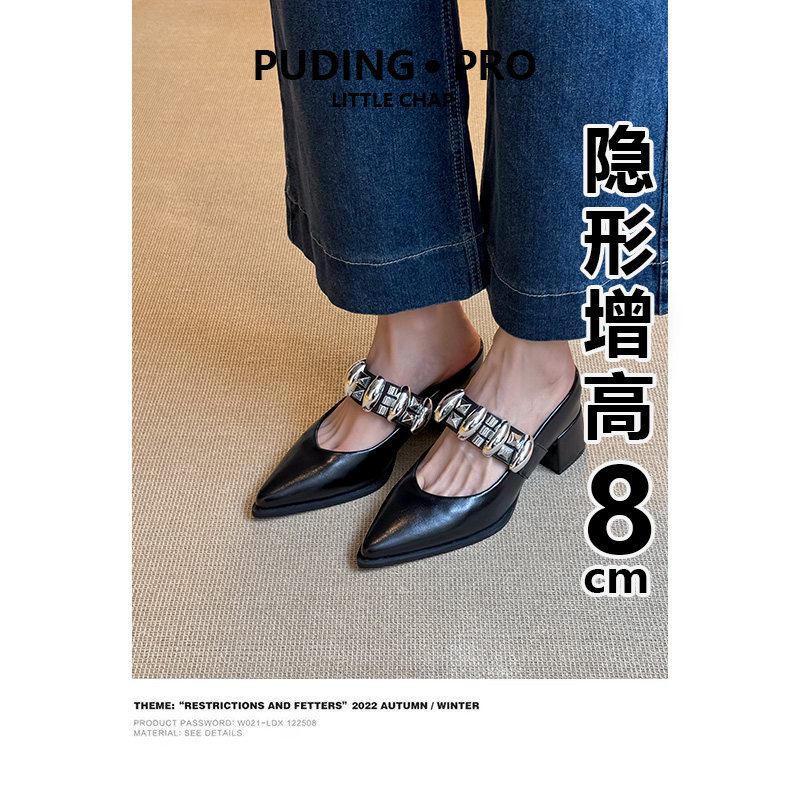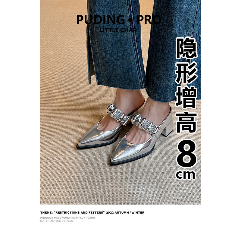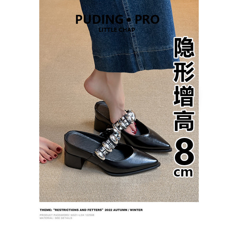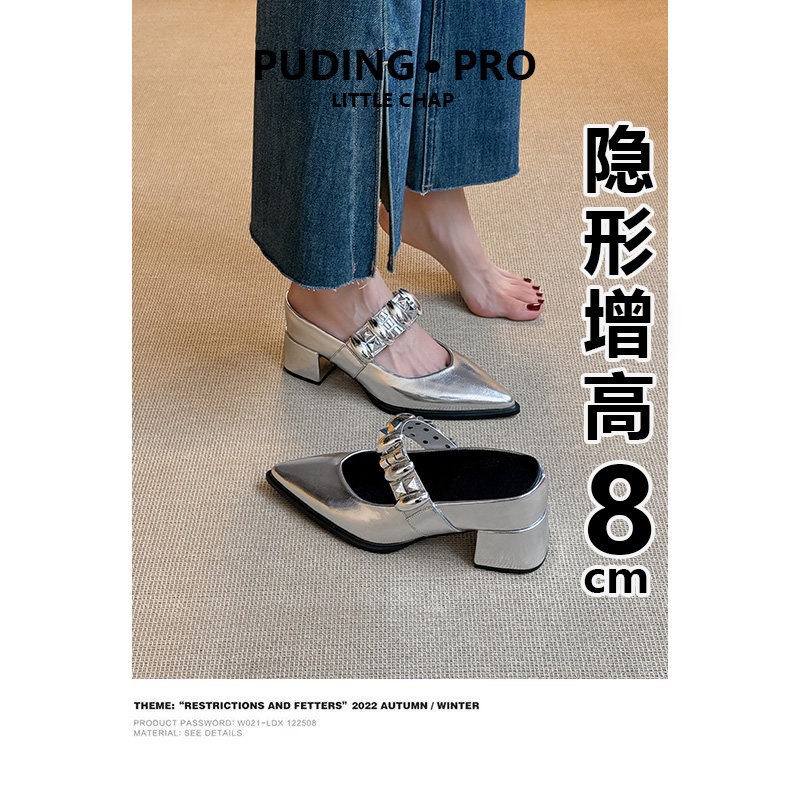 真皮版~内增高法式尖头玛丽珍鞋新款不累脚高跟单鞋女鞋子粗跟女