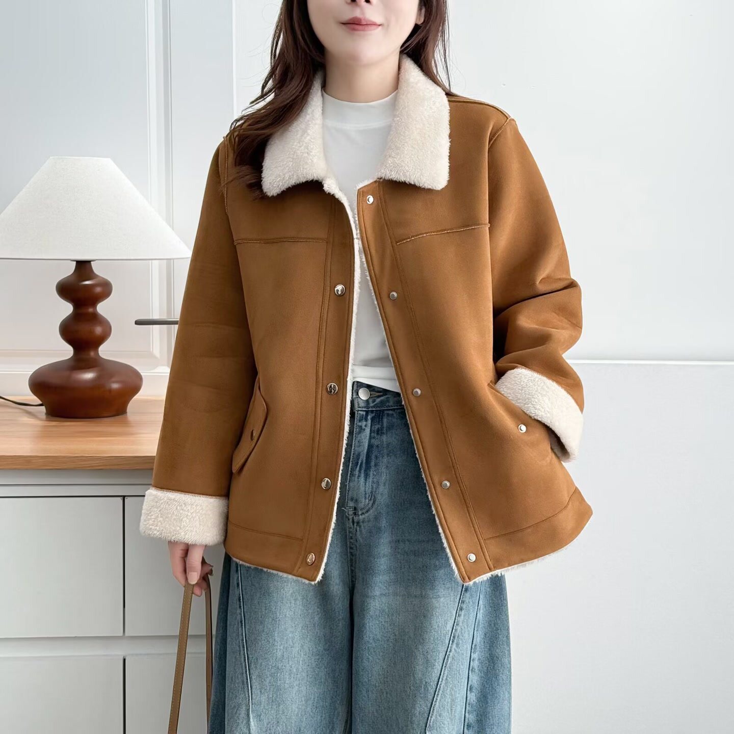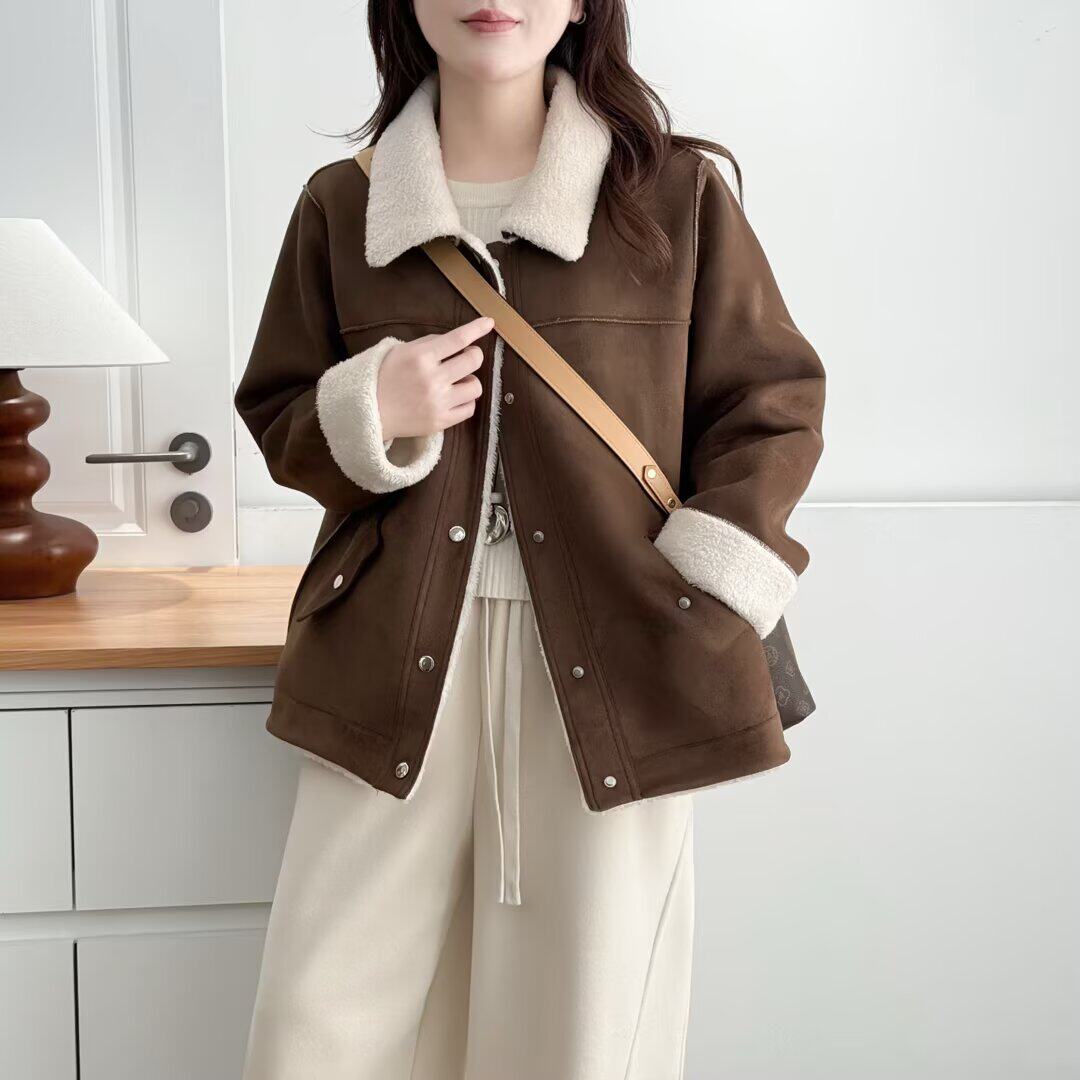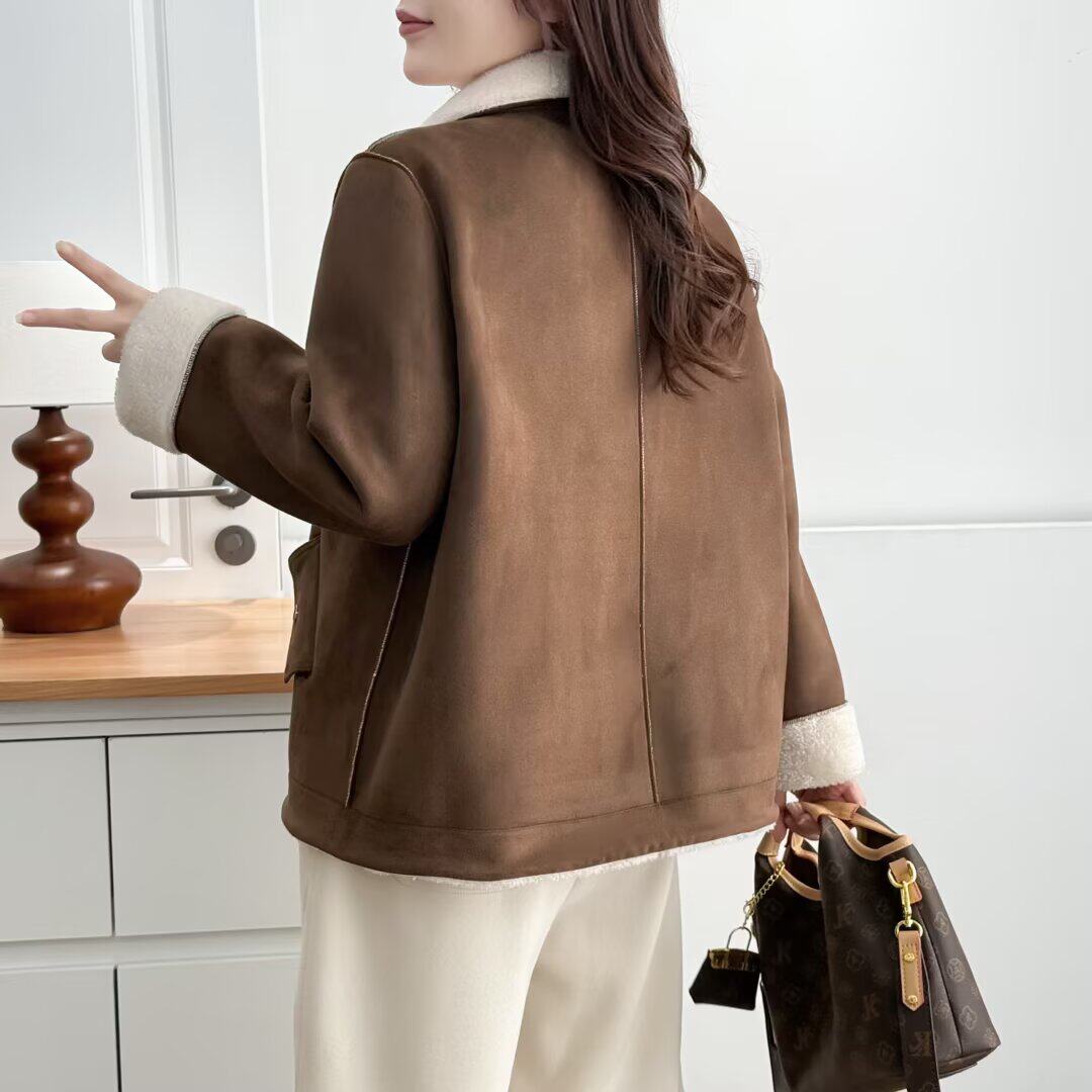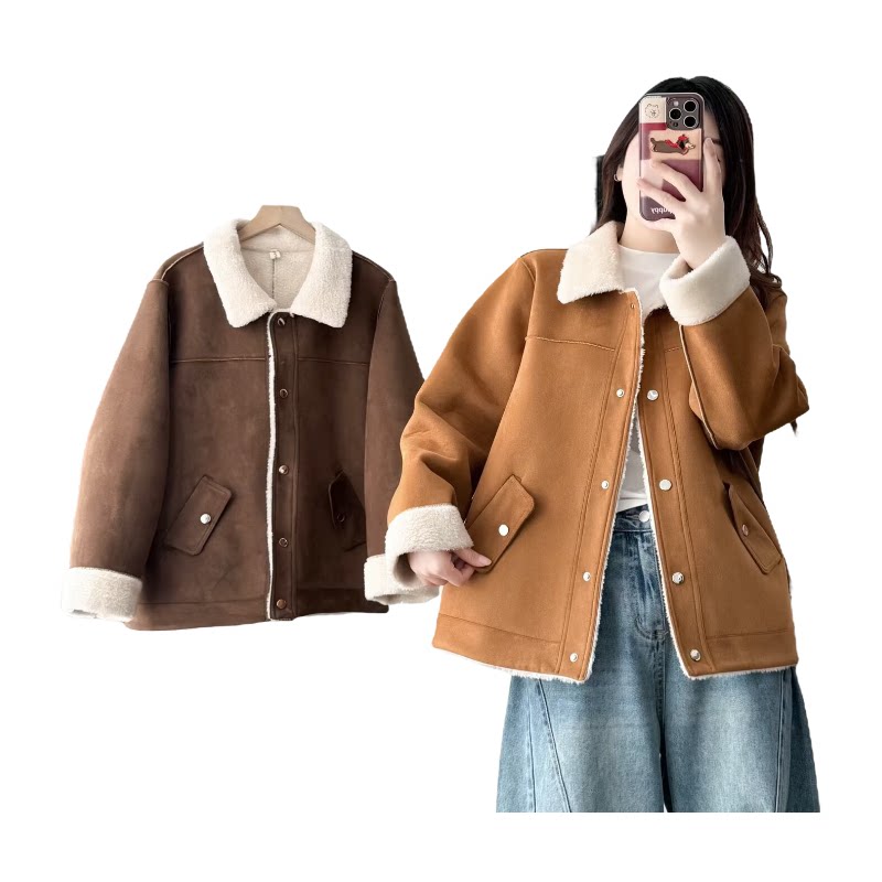 大码胖mm加绒加厚外套女2025秋冬新款时尚宽松翻领夹克上衣2527
