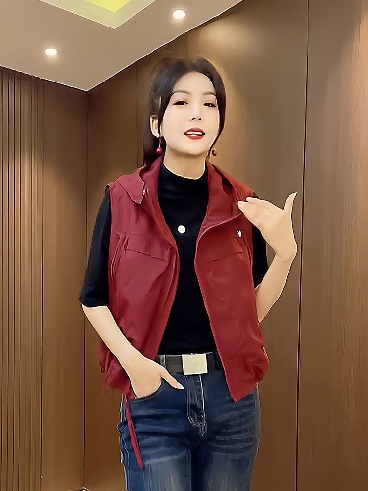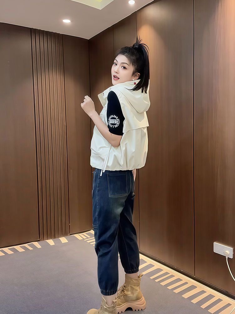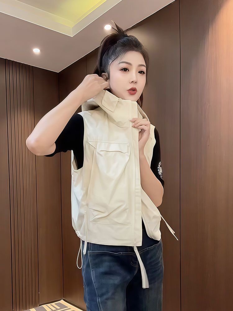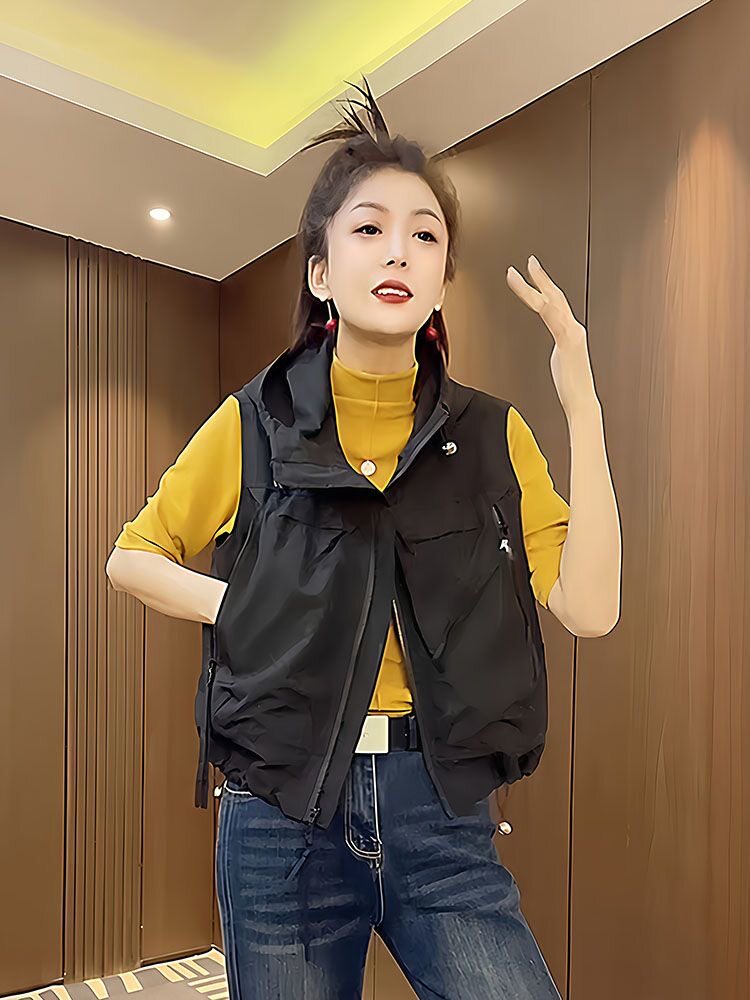 欧货工装马甲外套女款春秋新款小个子连帽休闲马夹背心时尚坎肩潮