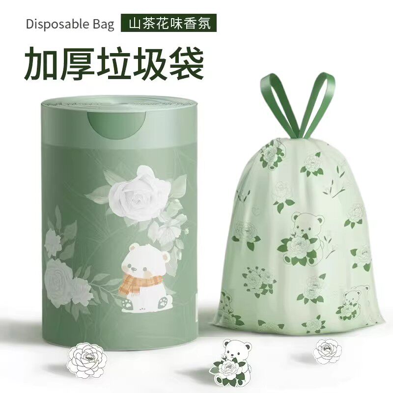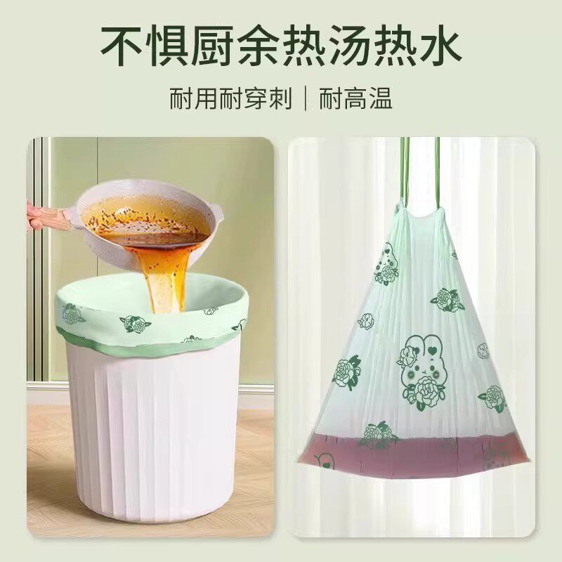 山茶花新款垃圾袋家用加厚手提式抽绳祛味自动收口塑料袋家用大号