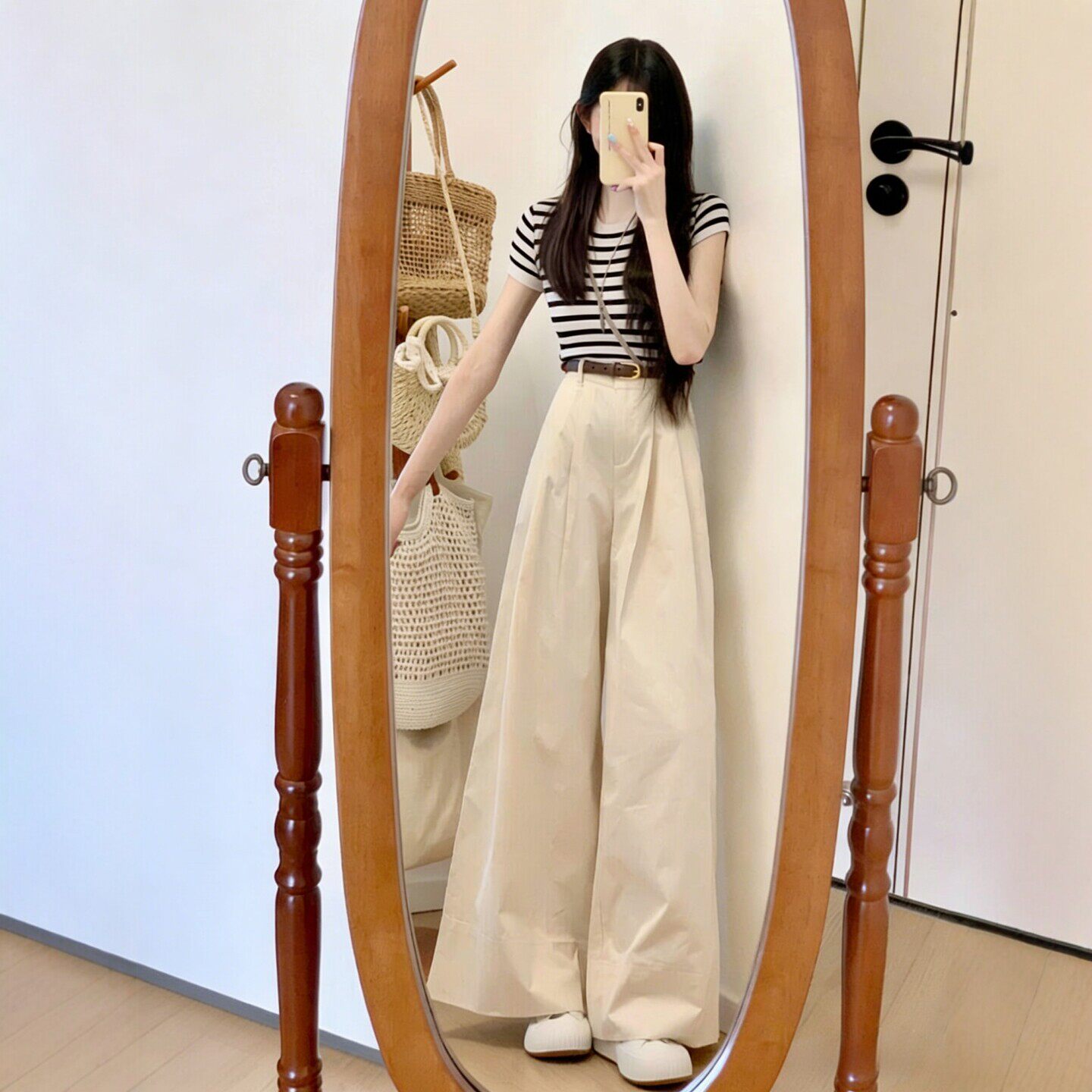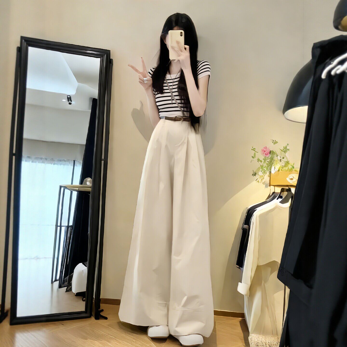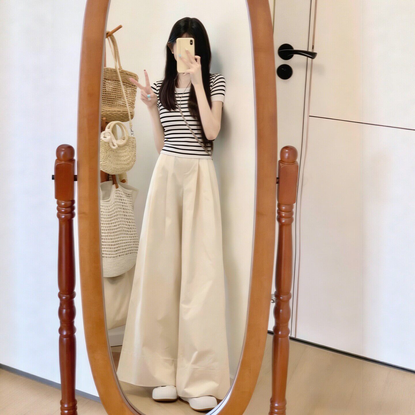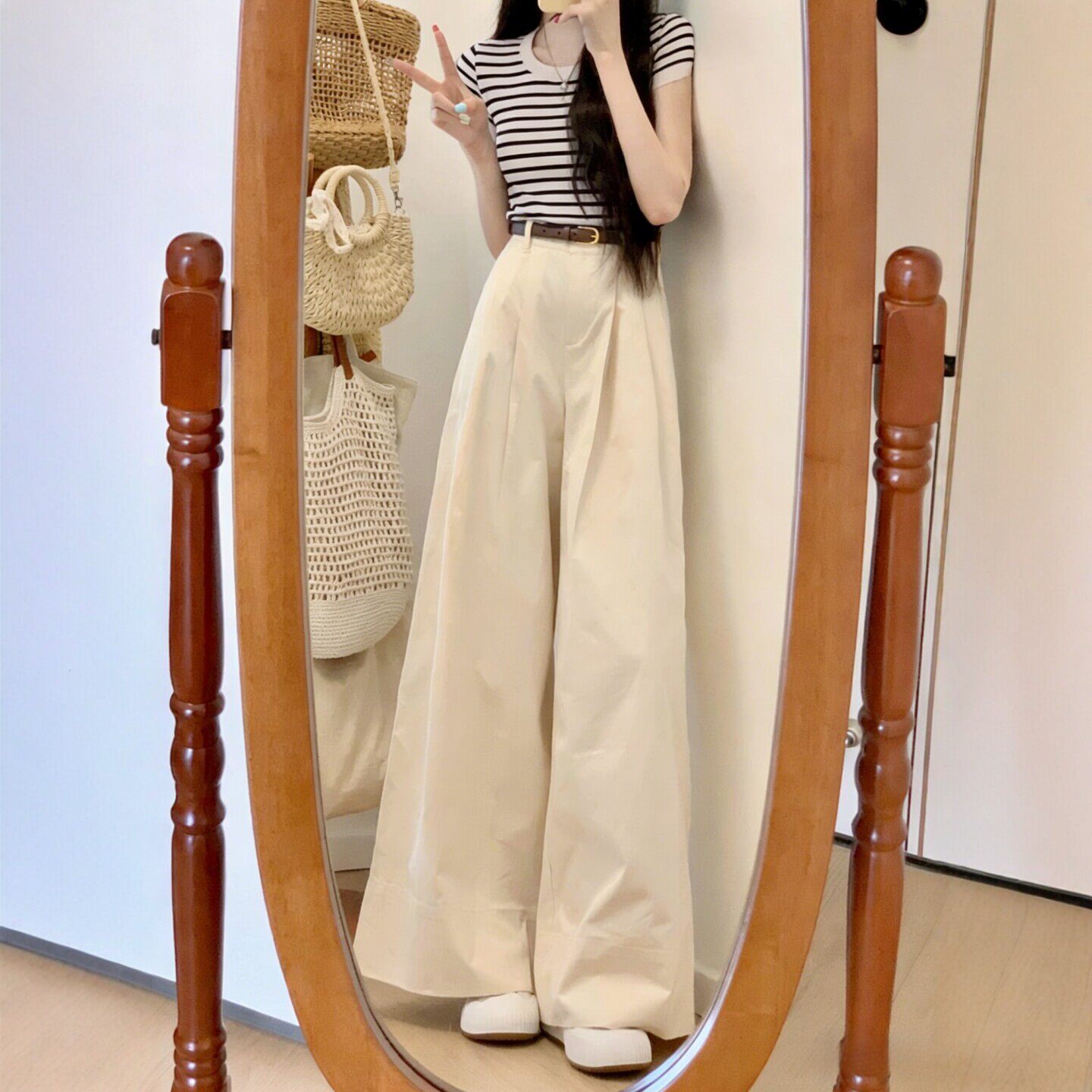 150小个子穿搭巨好看阔腿裤套装女2026夏季新款条纹针织T恤两件套