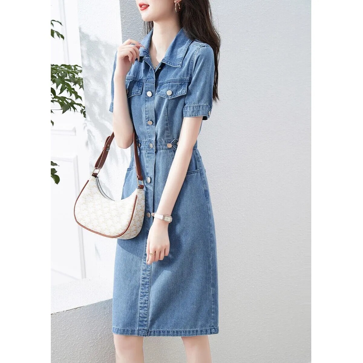 气质设计感牛仔连衣裙女夏季新款时尚显瘦百搭简约小个子舒适裙子